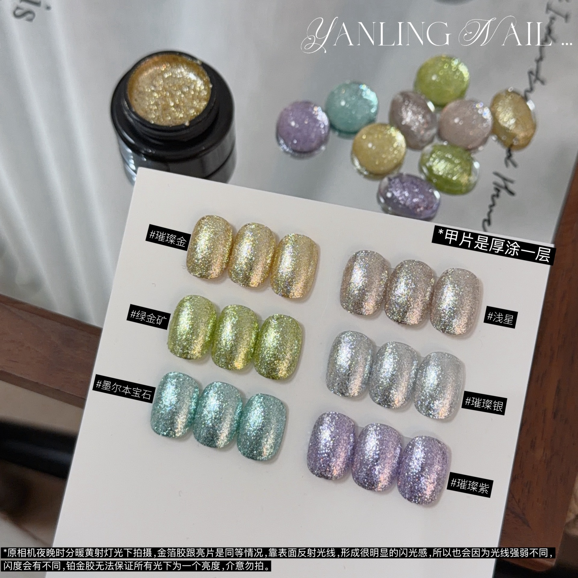 燕翎温变限定系列闪粉素材温变碎钻美甲胶微光细闪冷热魔法温变胶