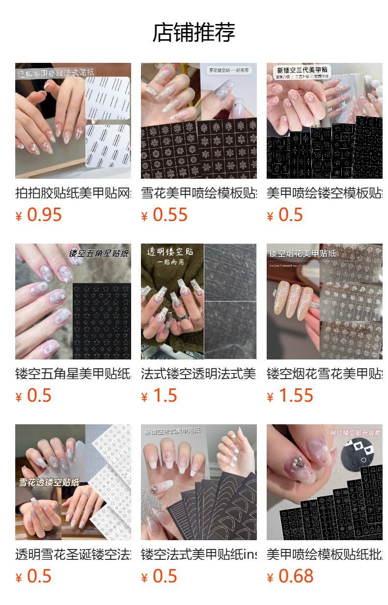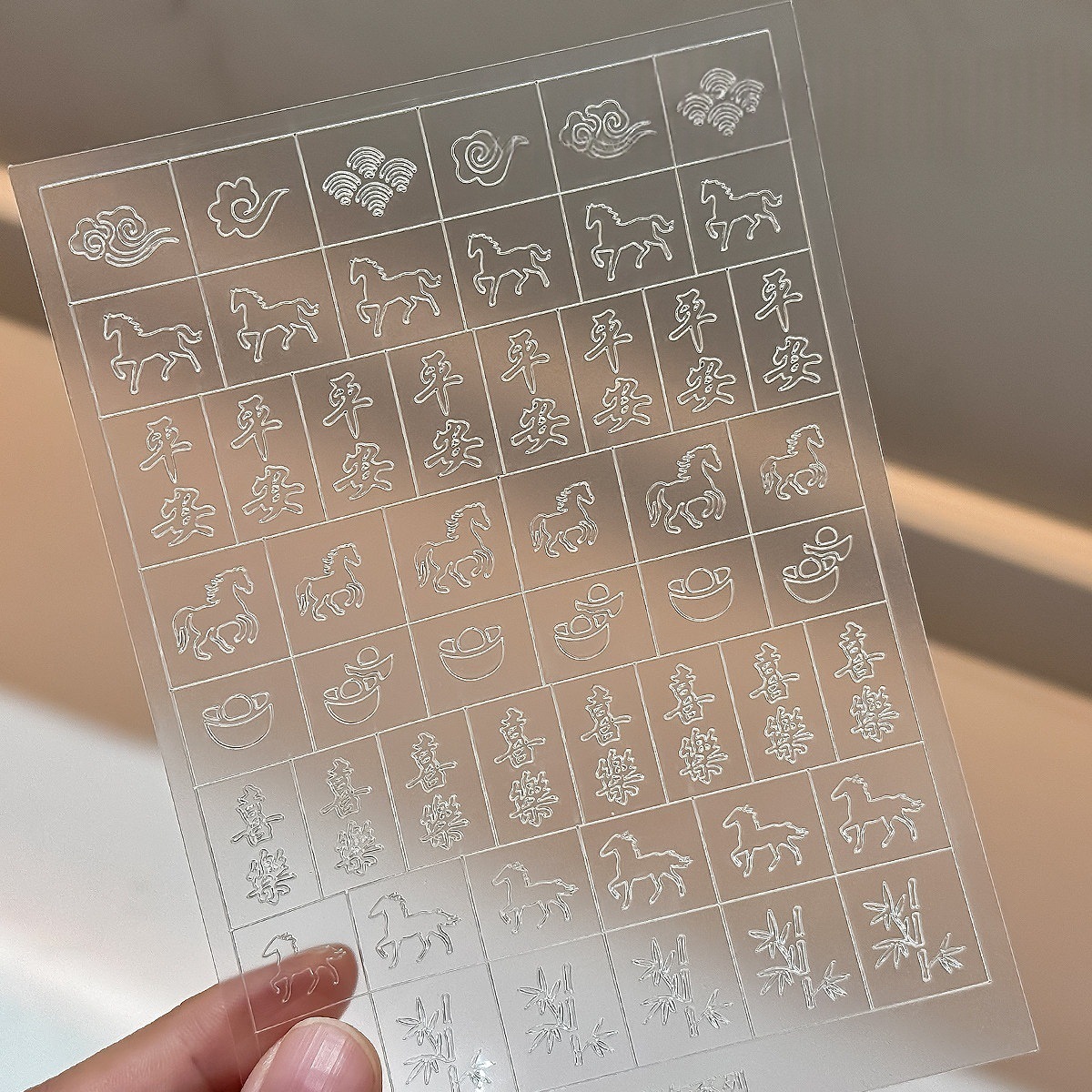 H-442【发财/旺福】,H-443【平安/喜乐】,H-444【福/烟花】,H-445【招财/发财】,H-446【恭喜/发财】,H-447【马年/大吉】,H-418【镂空雪花系列】1#,H-419【镂空雪花系列】2#,H-420【镂空雪花系列】3#,H-421【烟花系列】1#,H-422【烟花系列】2#,H-423【烟花系列】3#,H-403【五角星】,H-404【星芒】,H-405【蝴蝶结】,H-406【爱心】,H-407【蝴蝶】,H-408【克罗心】,H-031【镂空条纹】,H-032【高位法式】,H-033【经典法式】,H-034【半圆法式】,H-026【花边法式】1#,H-027【花边法式】2#,H-028【花边法式】3#,H-029【花边法式】4#,H-030【花边法式】5#,H-339雪花1号,H-340雪花2号,H-252【镂空星星】,H-345【爱心】喷绘贴纸,H-346【星星】喷绘贴纸,H-347【蝴蝶】喷绘贴纸,H-348【星芒】喷绘贴纸,H-349【花朵】喷绘贴纸,H-350【火焰】喷绘贴纸,H-357【经典法式】,H-358【镂空法式】,H-359【平弧法式】,H-360【浅v型法式】,H-361【V形法式】,H362【经典线条】,H-308【法式1号】,H-309【法式2号】,H-310【法式3号】,H-311【法式4号】,H-312【法式5号】,H-313【法式6号】,H-302【爱心】喷绘贴两用,H-303【蝴蝶】喷绘贴两用,H-304【克罗心】喷绘贴两用,H-306【月亮】喷绘贴两用,H-307【小熊】喷绘贴两用,H-363 豹纹,H-364 斑马线,H-365 格子,H-366 棋盘,H-367 线条,H-368 鱼鳞