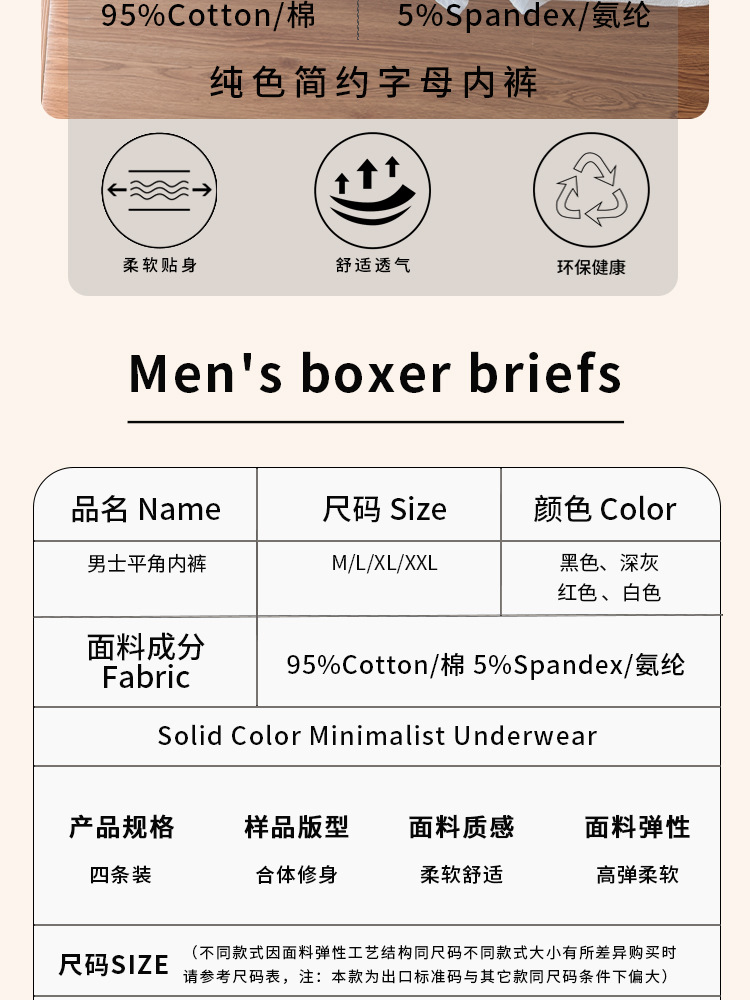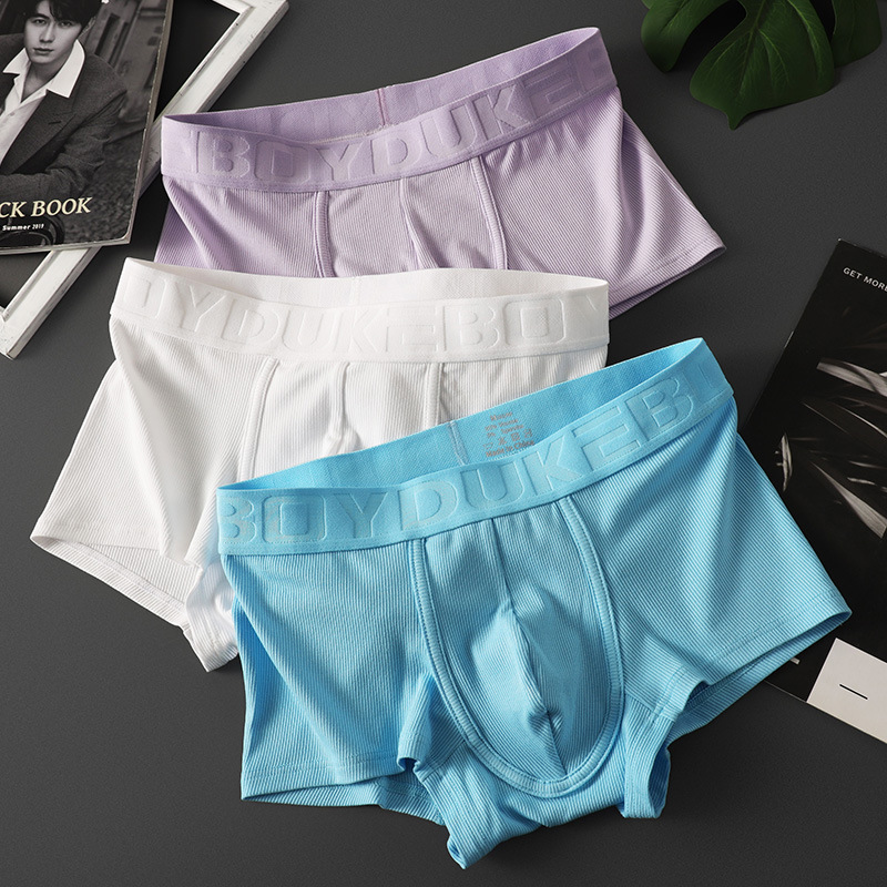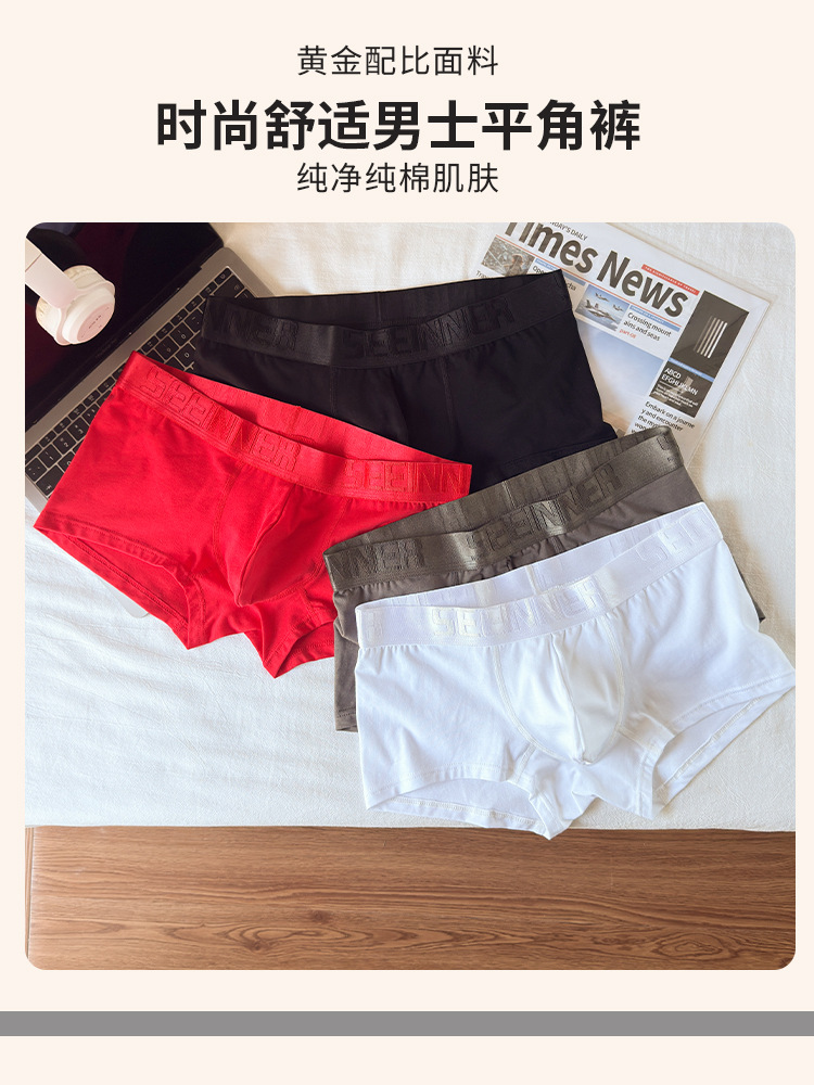 罗纹新款男士平角内裤人棉四角短裤透气亚马逊速卖通外贸欧美大码