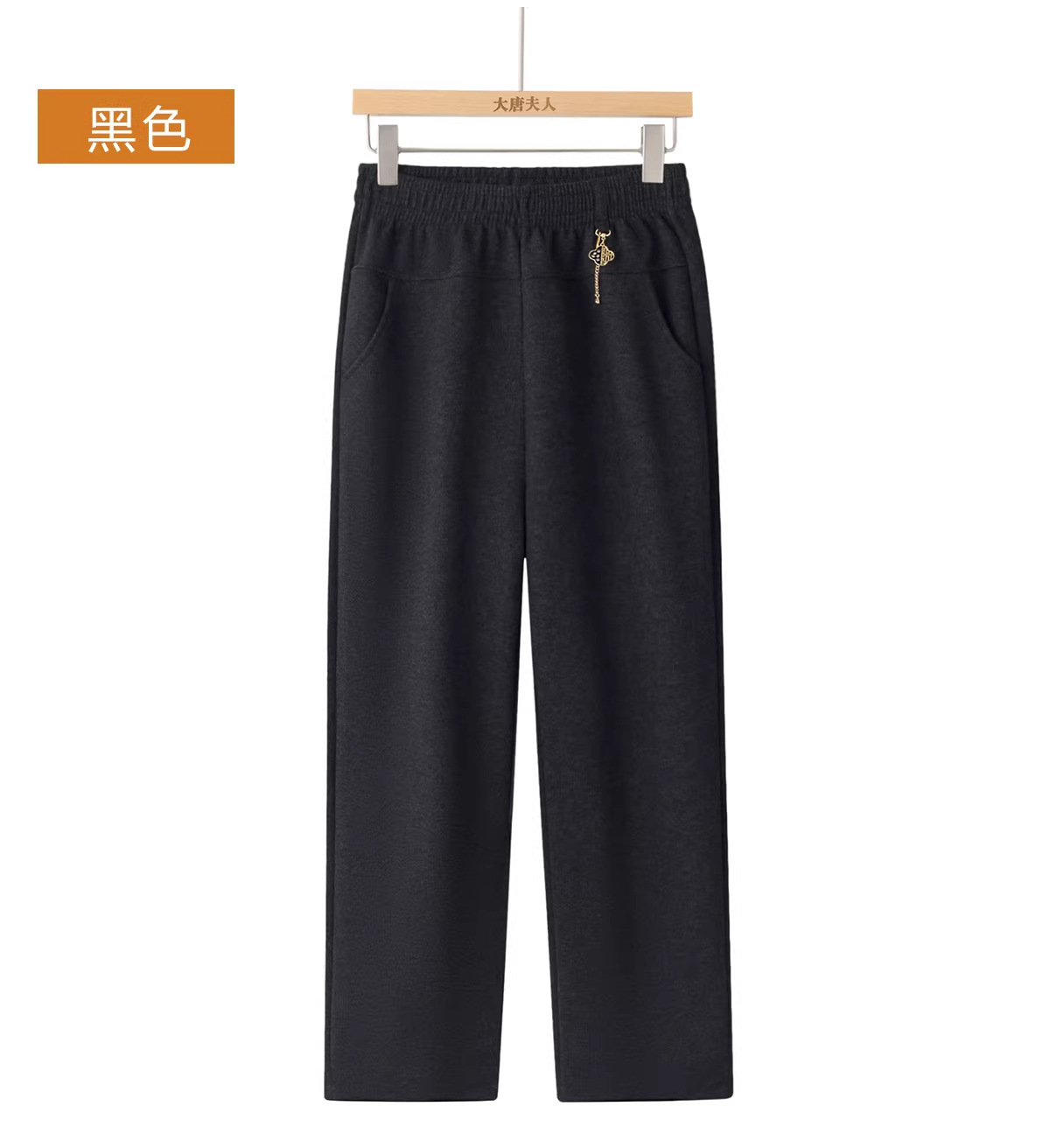 大唐夫人中老年人裤子奶奶小白花休闲裤松紧腰带妈妈纯色秋长裤
