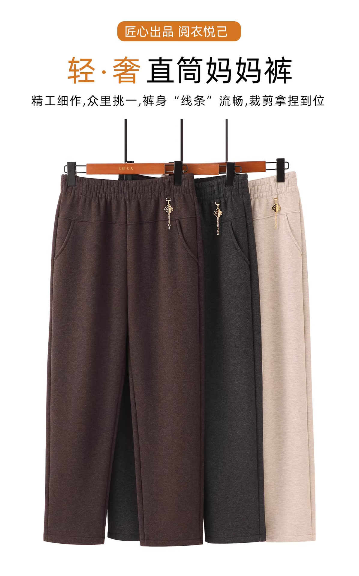 2025秋冬妈妈装加绒加厚直筒长裤休闲裤松紧腰女裤中老年女装新款
