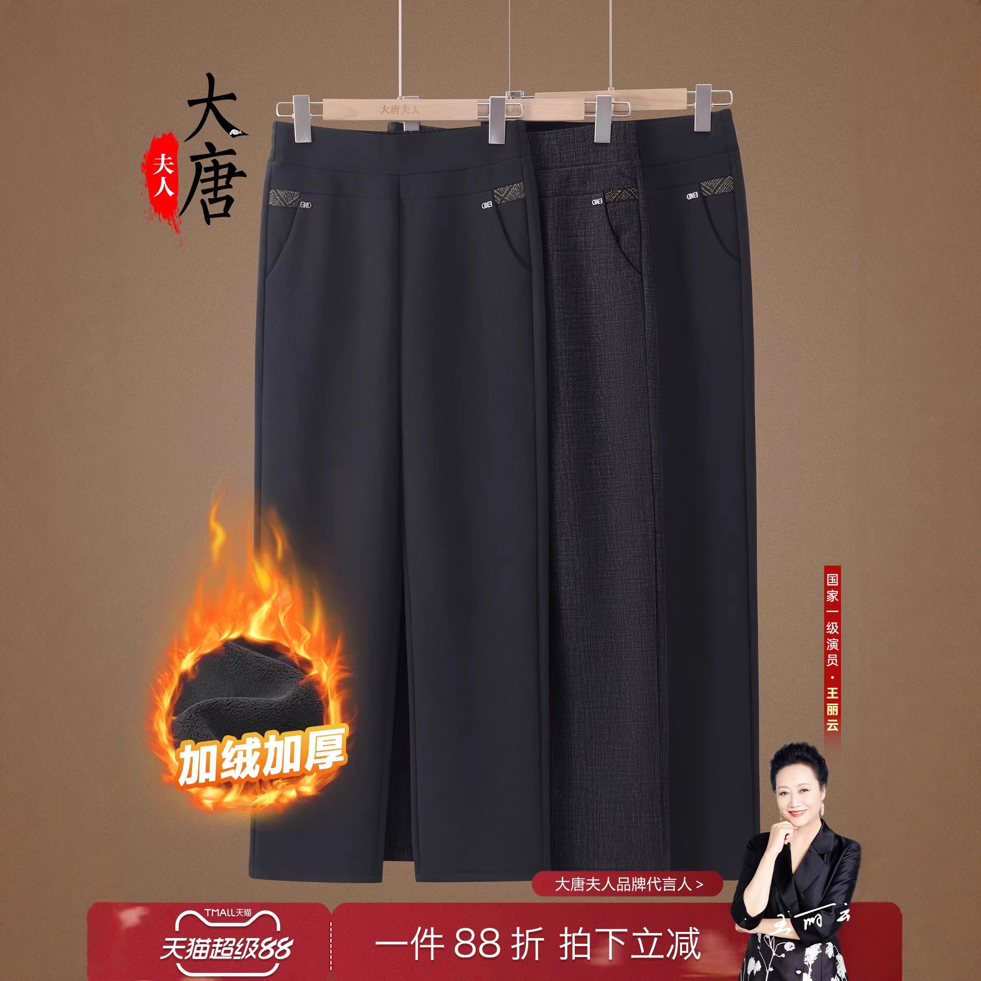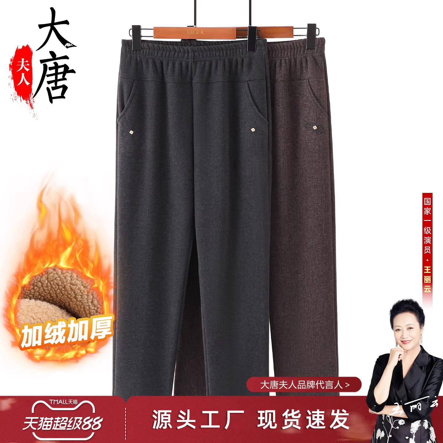 大唐夫人妈妈裤子冬加厚加绒休闲裤中老年人女阔腿裤奶奶冬装长裤