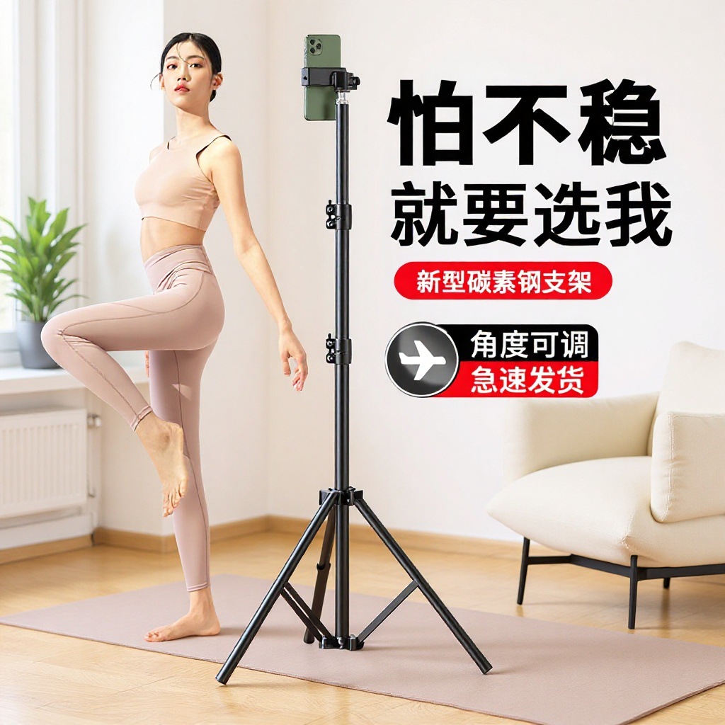 手机碳素钢加厚加粗磨砂直播支架多功能拍照落地式三脚架
