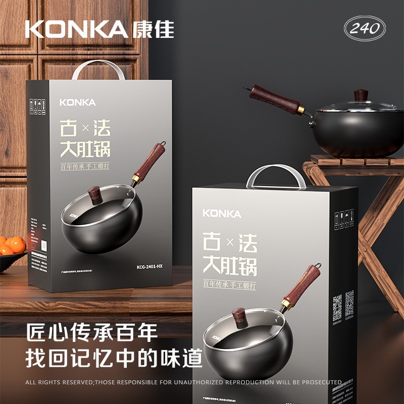 康佳大肚锅迷你小铁锅加厚小炒锅家用炒菜锅无涂层锅古法大肚锅