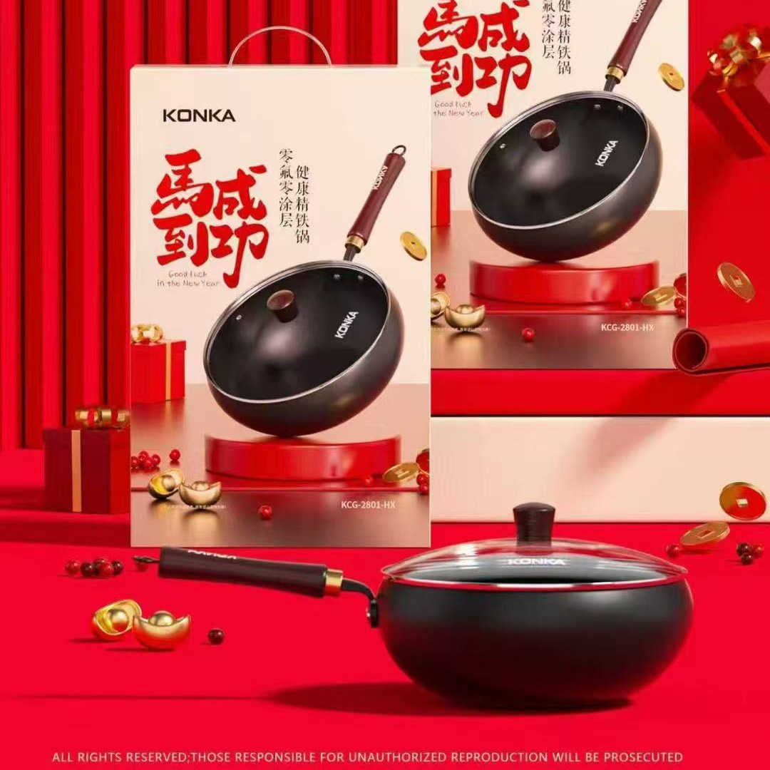 康佳紅動中国炒め鍋大容量炒め鍋は鍋にくっつかない多機能焼き鍋フライパンプレゼント鍋具