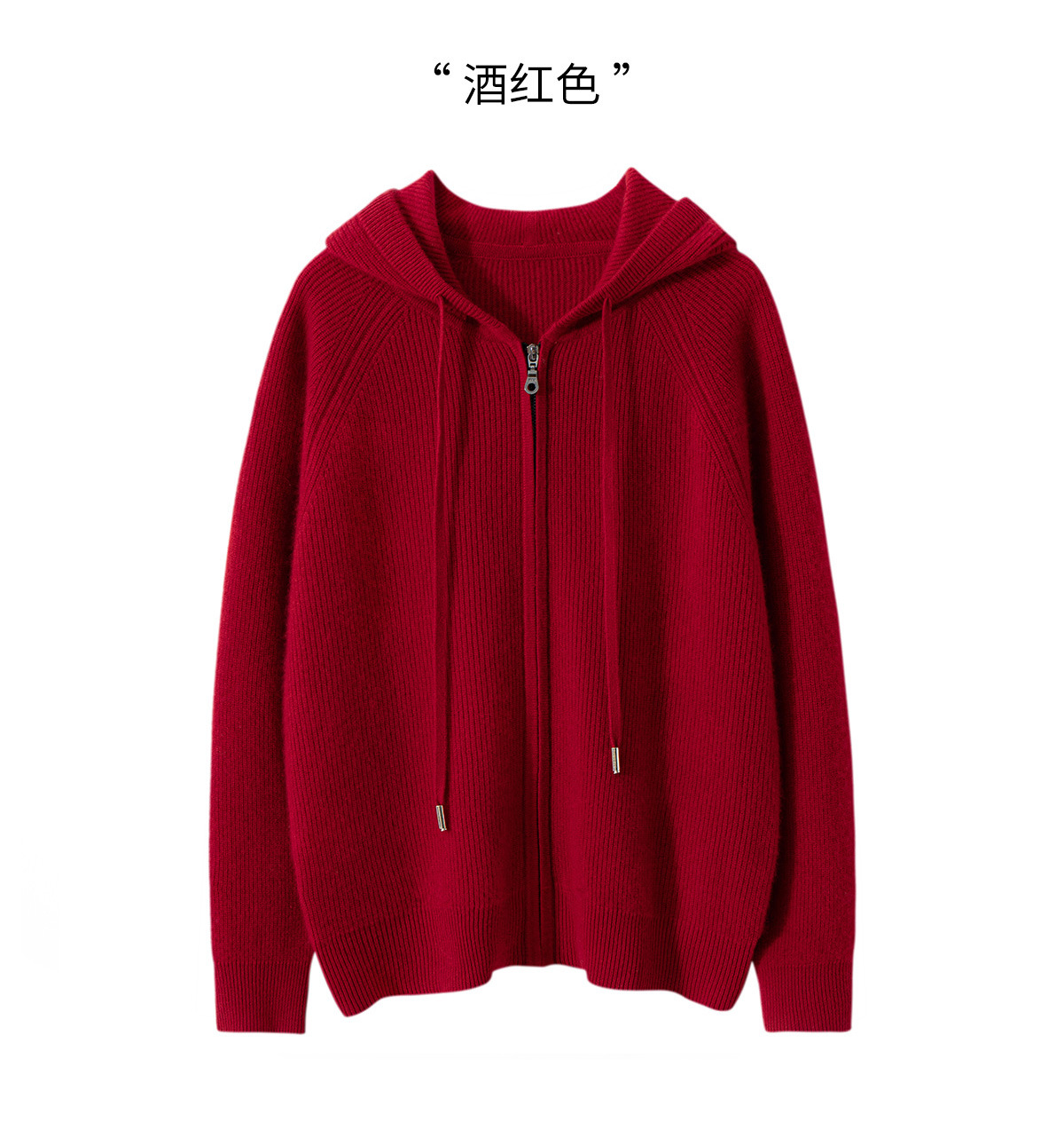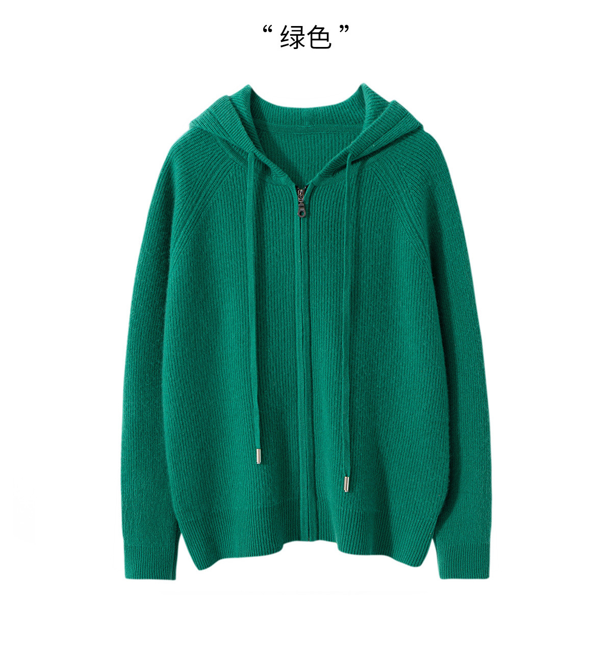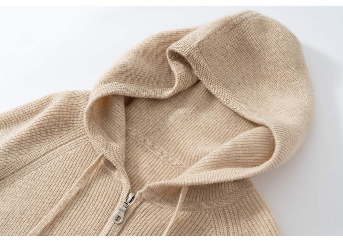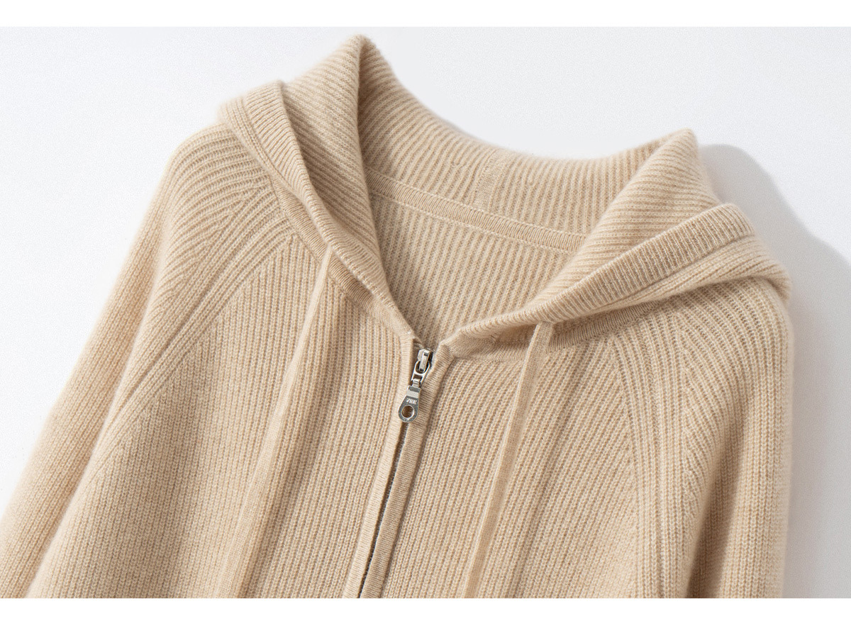 100纯山羊绒针织开衫连帽拉链简约加厚毛衣外套帽衫落肩袖羊绒衫