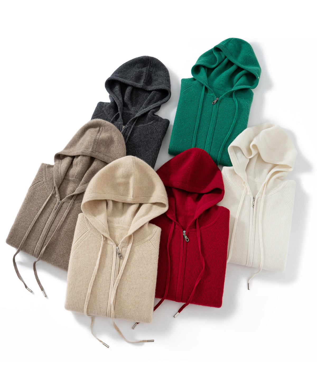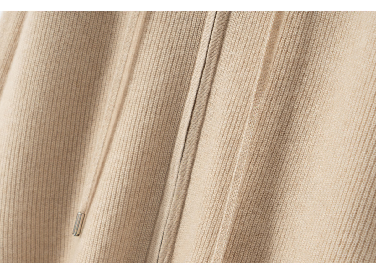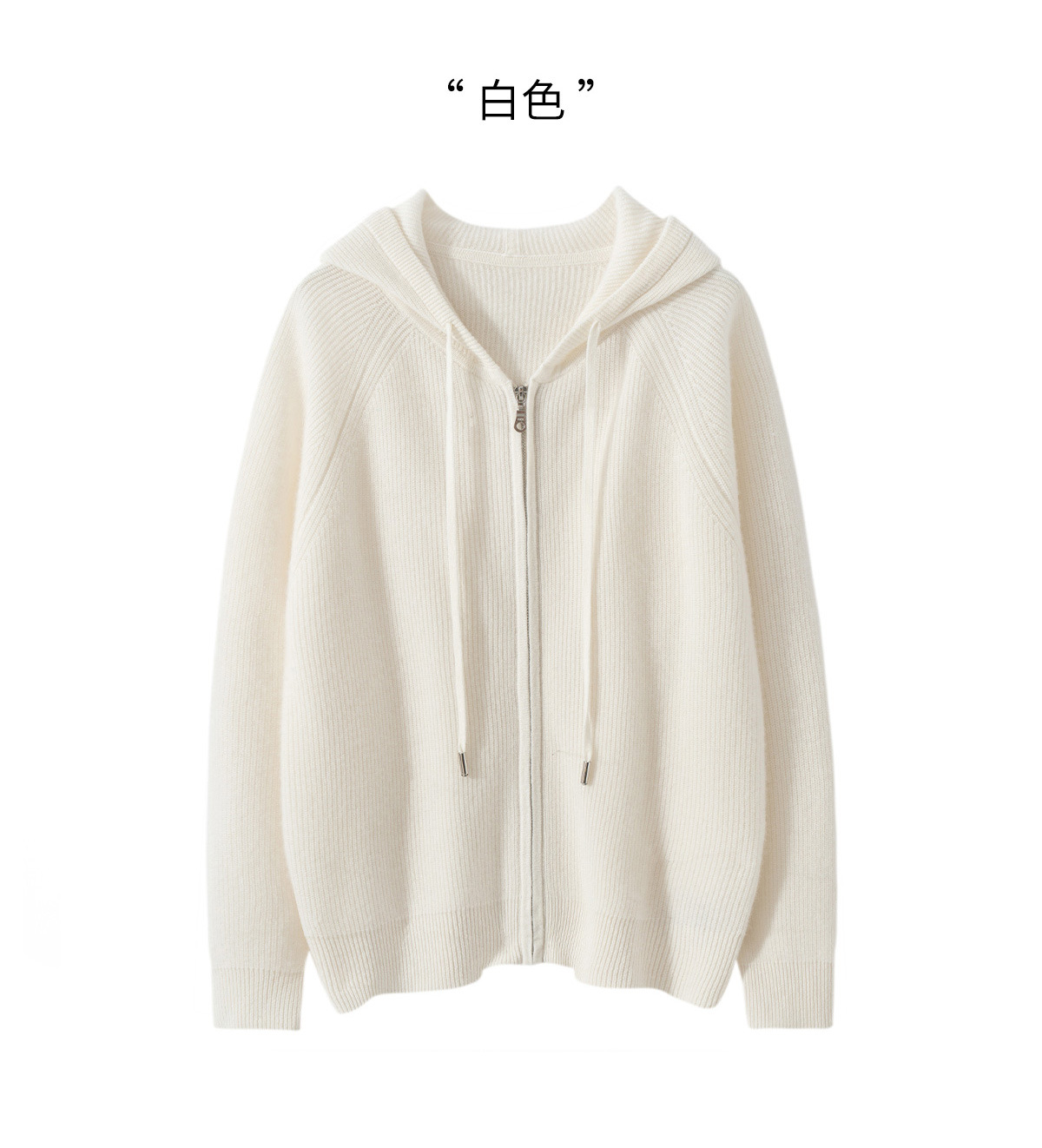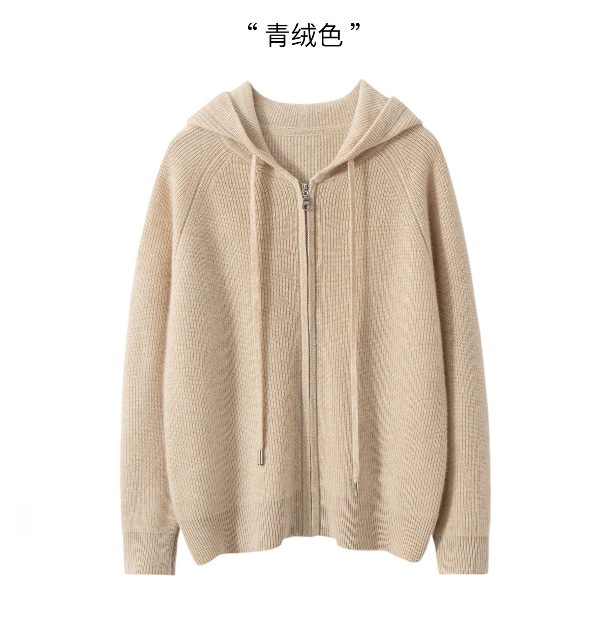 100纯山羊绒针织开衫连帽拉链简约加厚毛衣外套帽衫落肩袖羊绒衫