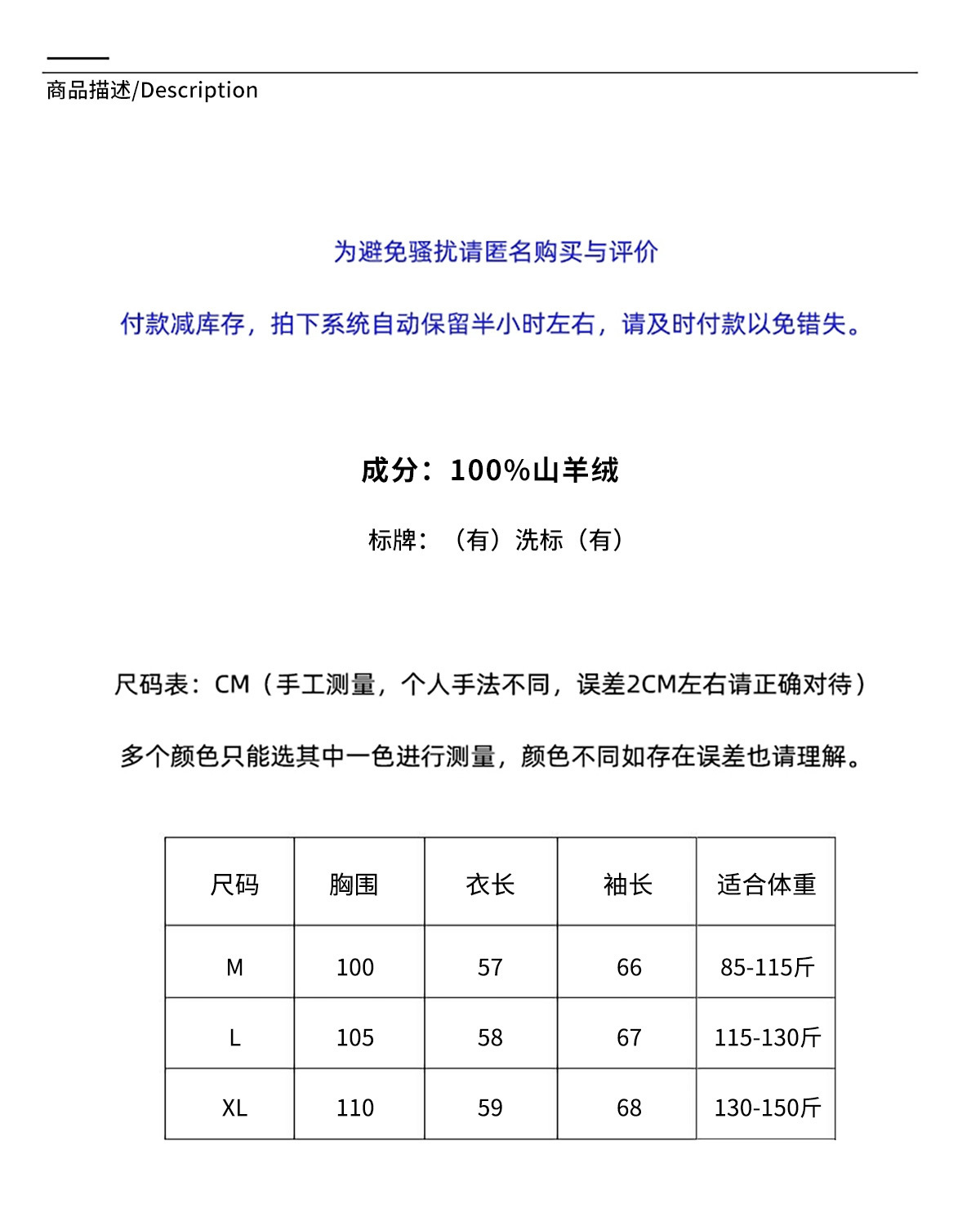 面料名称 纯山羊绒