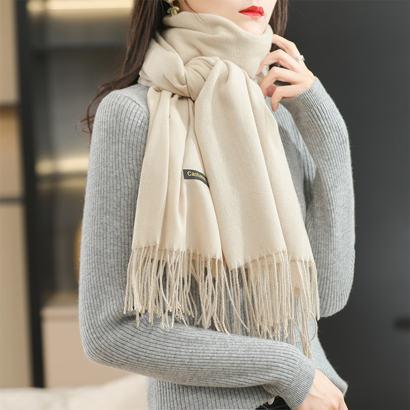 【ブランド在庫一掃】ウールのマフラーを厚くして保温した大ストールの外に秋冬の女性用カシミヤの純色を合わせます。
