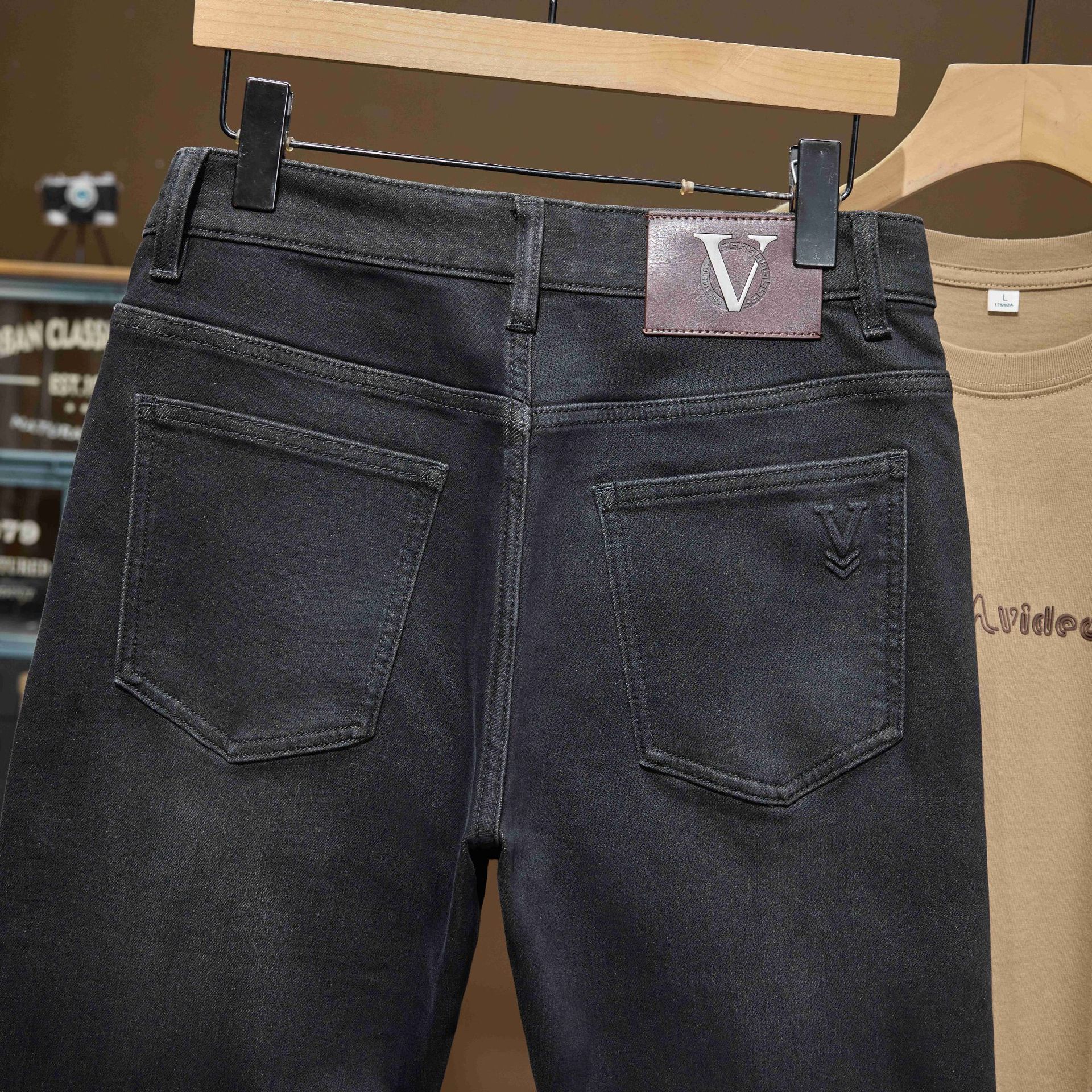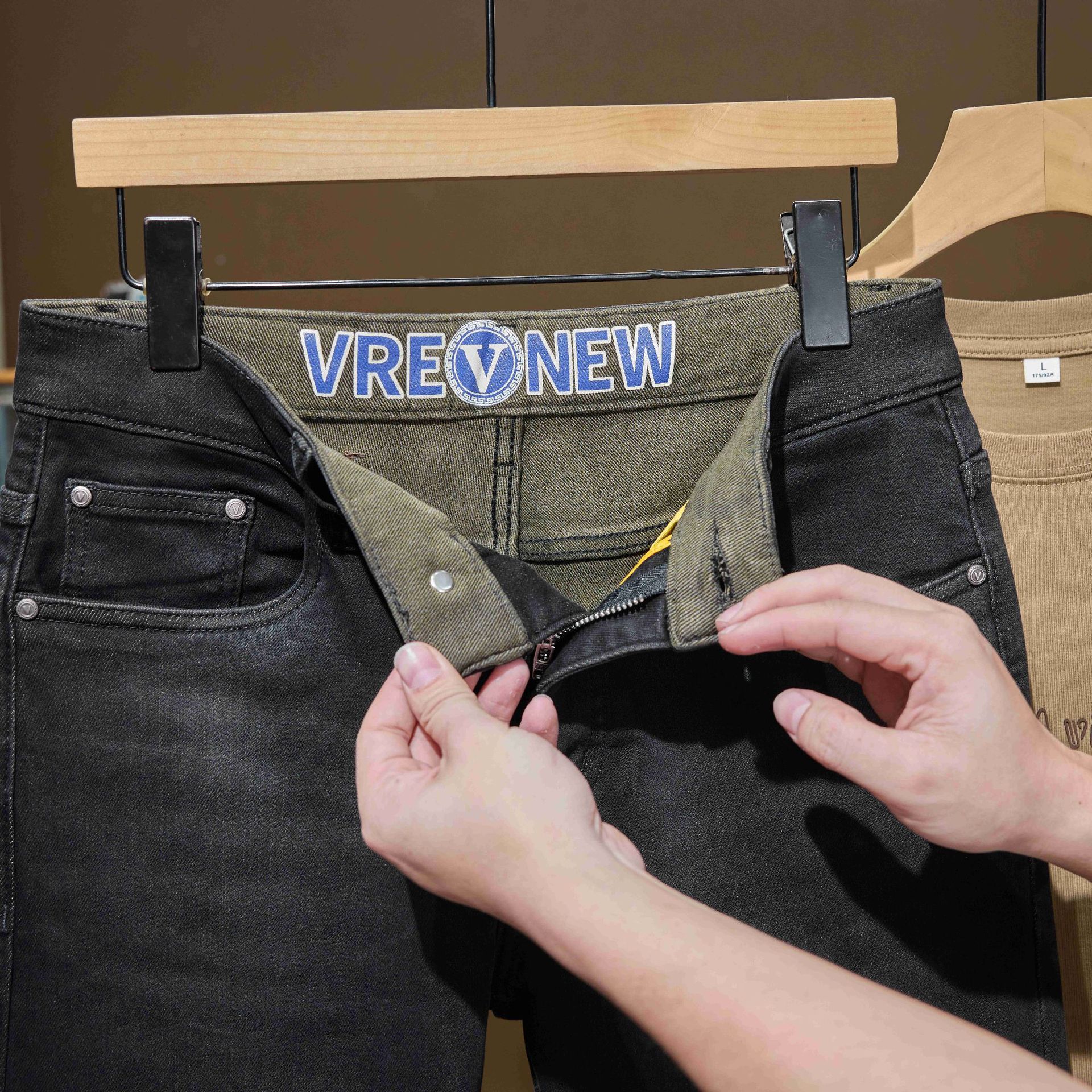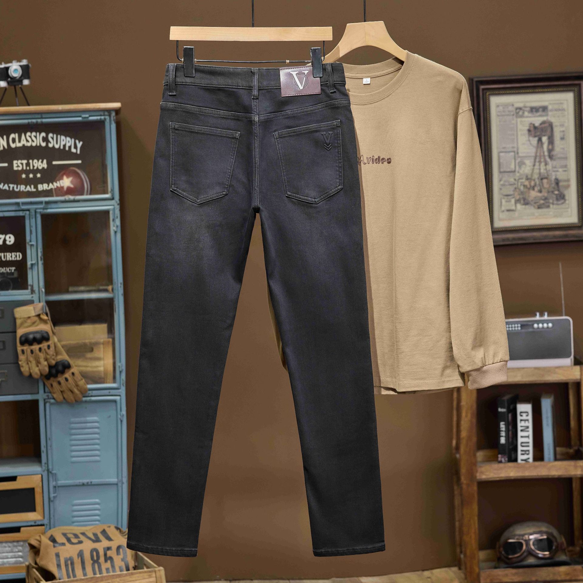 2025秋冬新款男士纯黑厚款牛仔裤弹力修身小直筒潮牌百搭休闲长裤