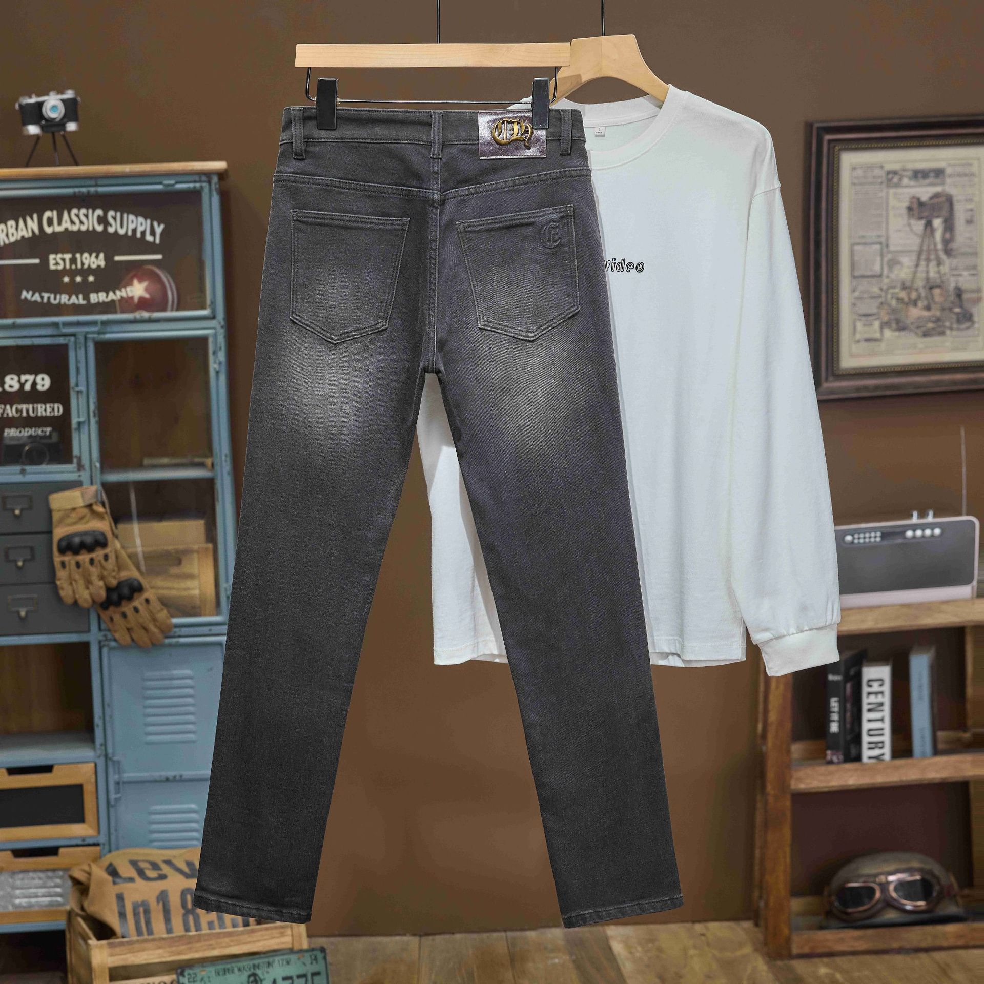 秋冬季男士牛仔裤新款欧货2025新款弹力修身小直筒潮牌休闲裤子