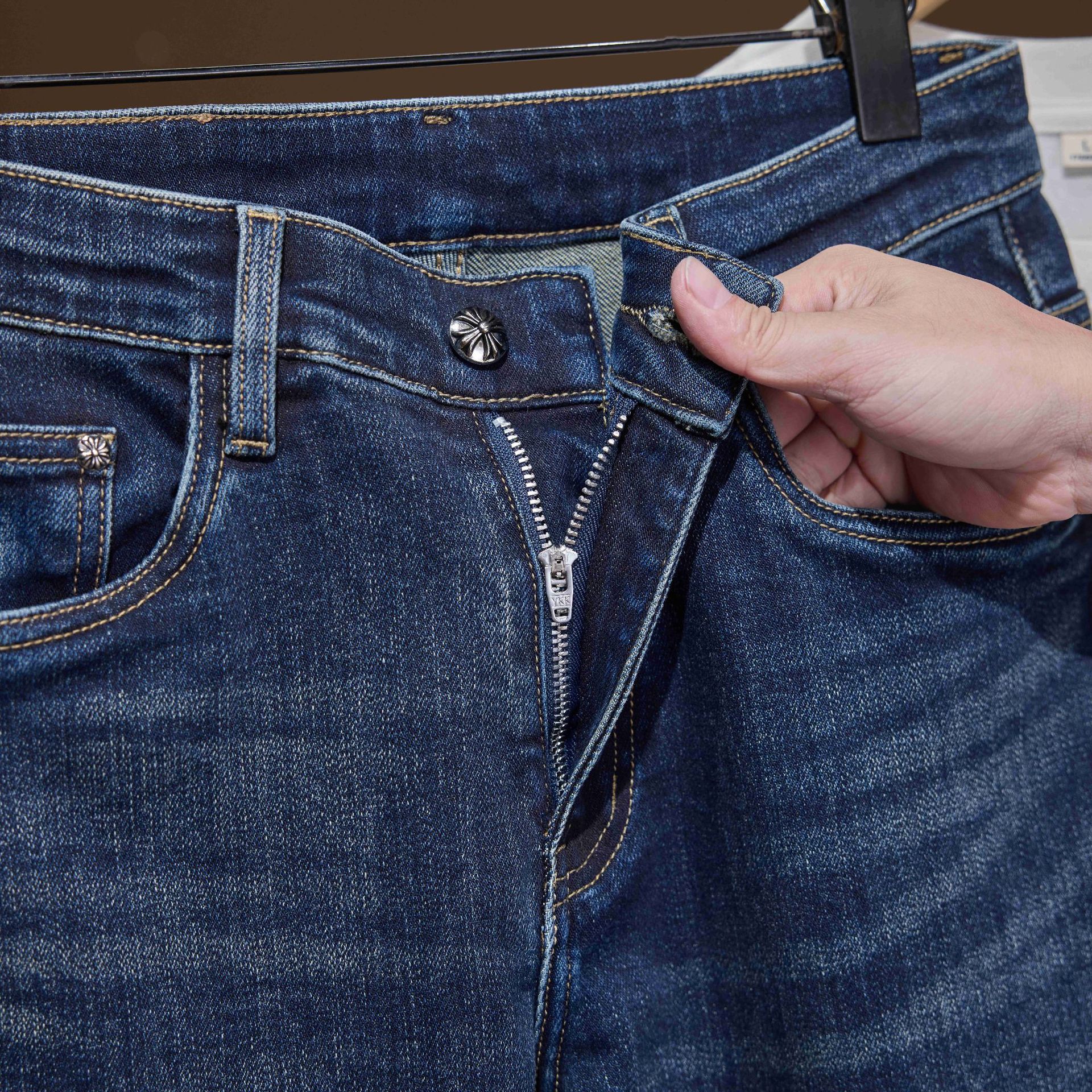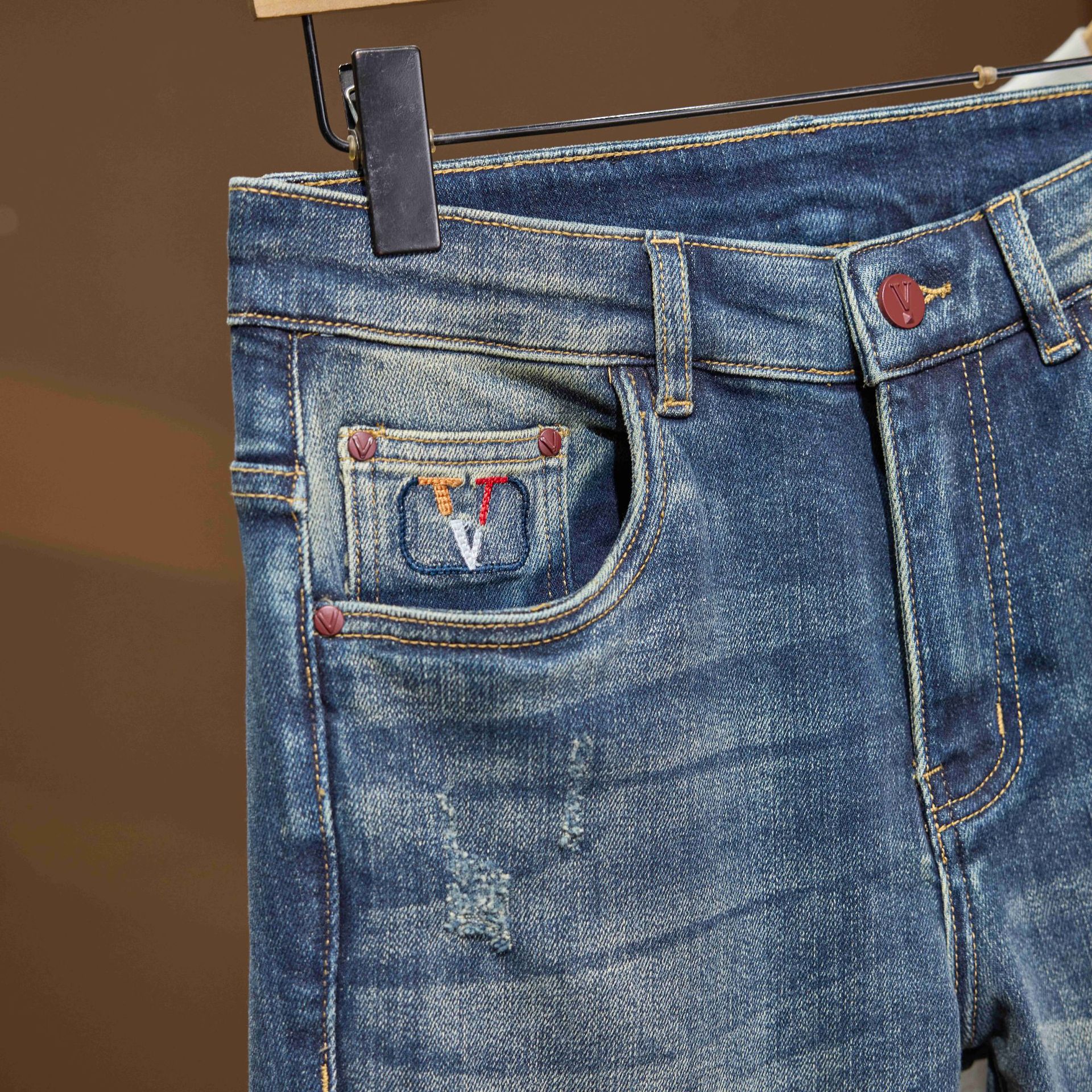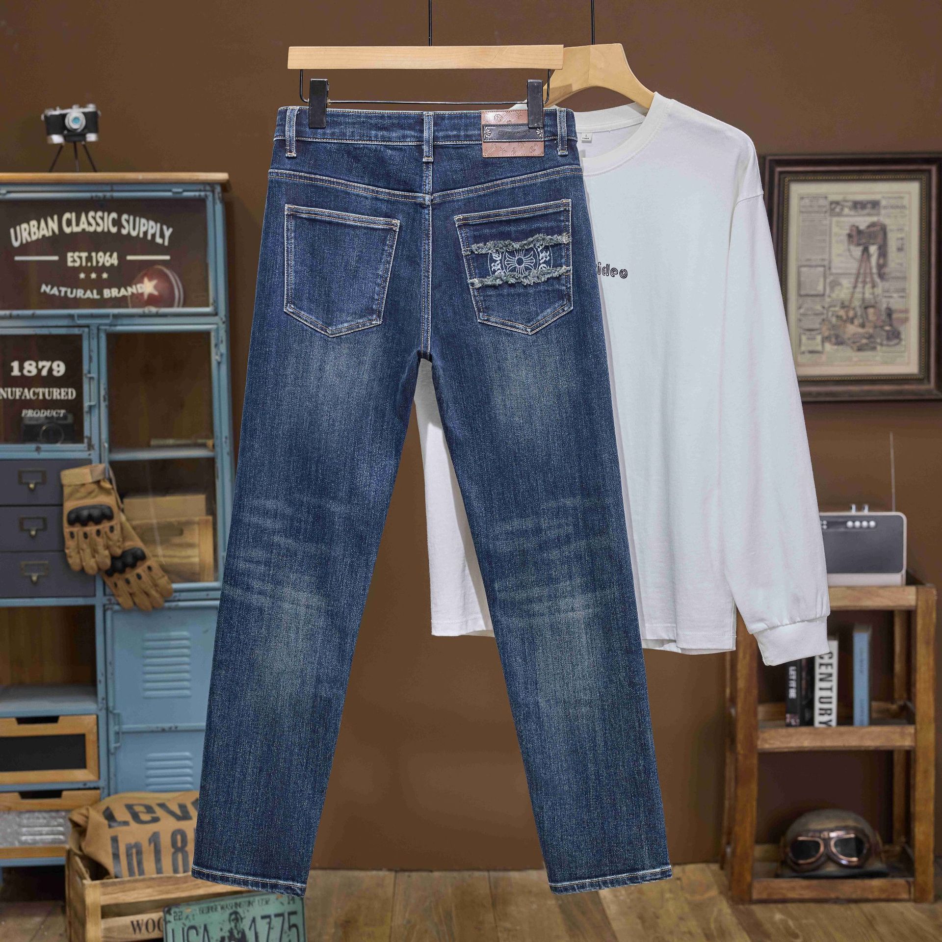 プレミアム春夏トレンドブランド刺繍ジーンズメンズストレッチスリムストレートシンプルハンサムヨーロピアンカジュアルパンツ