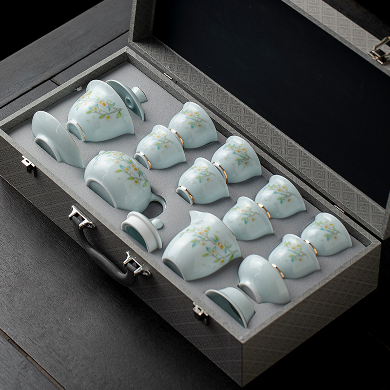 高档浮雕青瓷茶具套装陶瓷功夫茶具茶壶茶杯家用泡茶整套商务送礼
