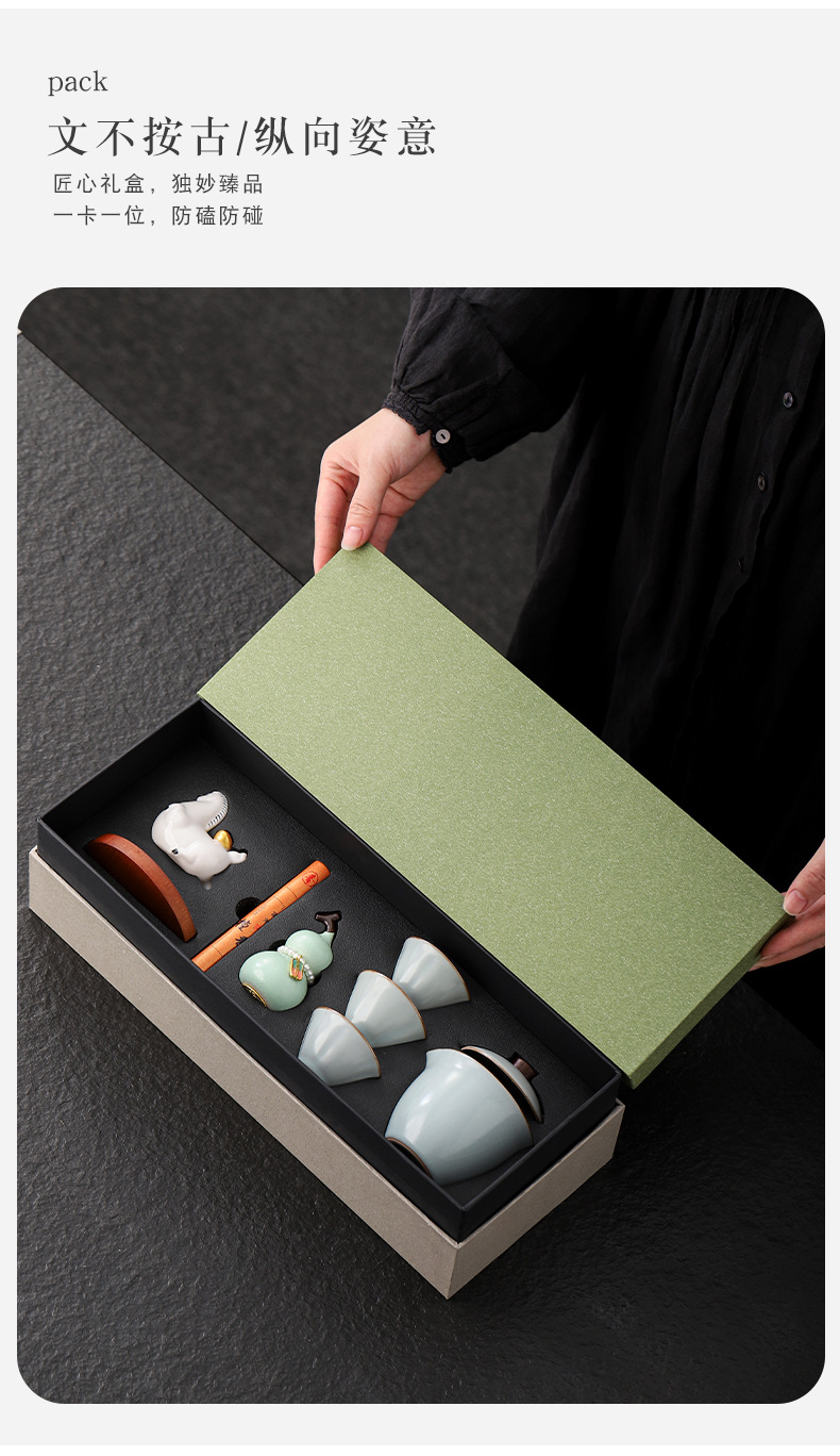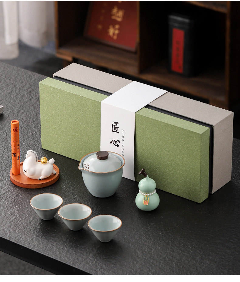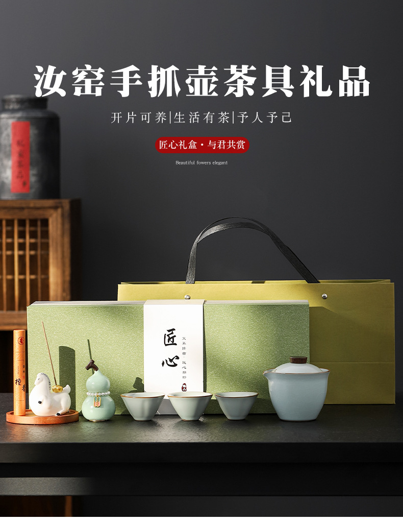 汝窑创意陶瓷茶具套装年会开业商务精致伴手礼送员工送客户印logo