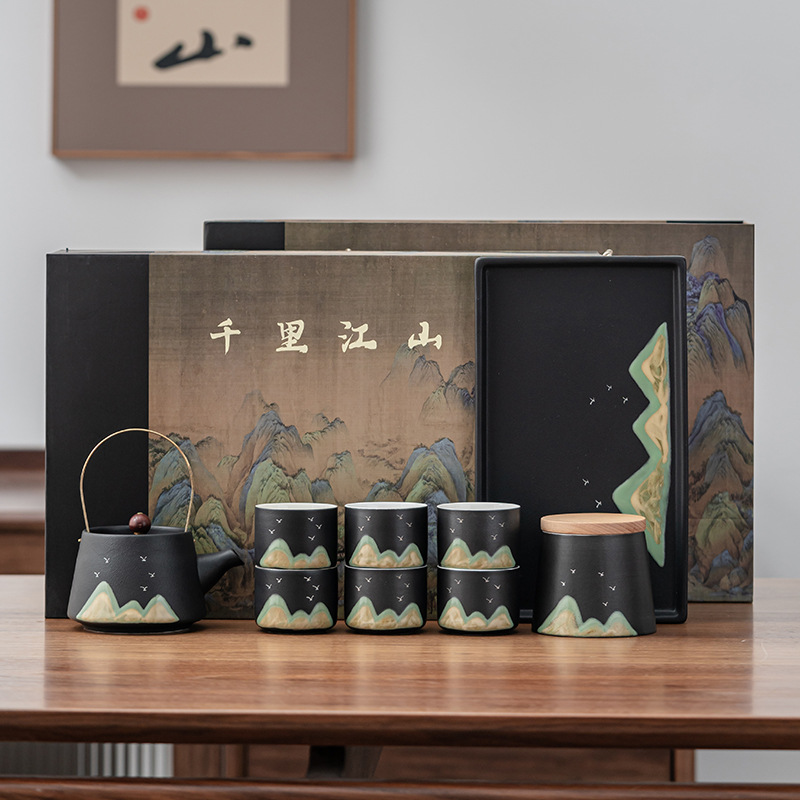 Qianli Jiangshan ティーポット カンフー ティーセット ビジネス イベント クライアント向けセラミック ティーセット 記念品 ロゴ付き