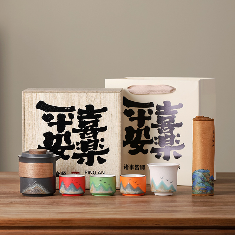 熊猫茶具套装便携式旅行茶具商务礼品年会周年庆开业伴手礼印LOGO
