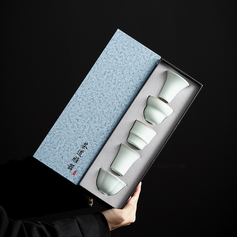 Guochao 文化的で創造的な天青ル窯カンフー茶セットティーカップセットセラミックマスターカップハイエンドティーカップティーボウルお土産