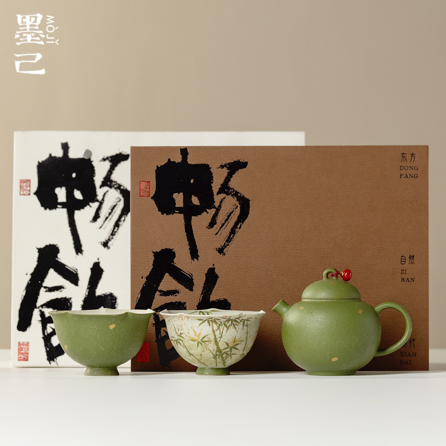 墨己礼盒装礼品茶具一壶两杯家用手绘竹子茶壶套装礼物功夫茶具
