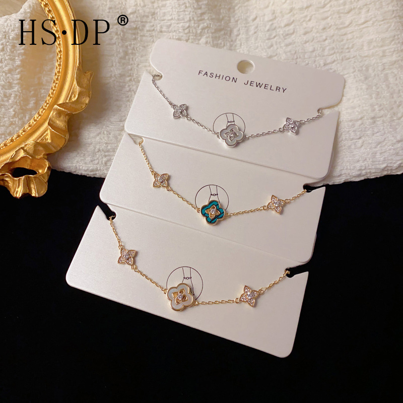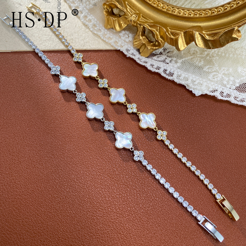 跨境精致时尚轻奢锆石贝壳四叶花手链个性简约高级感超闪手饰批发