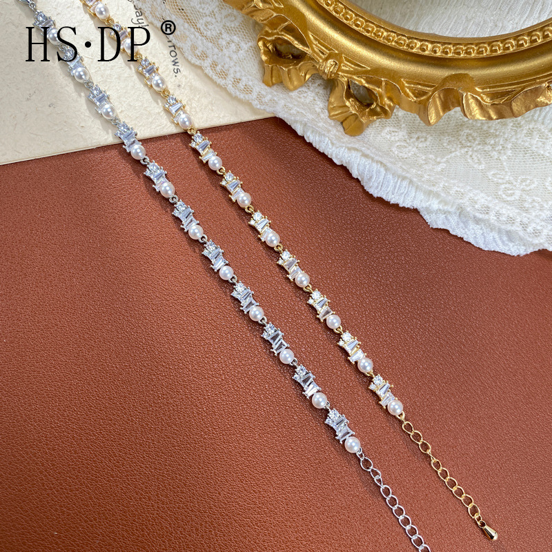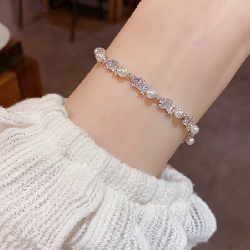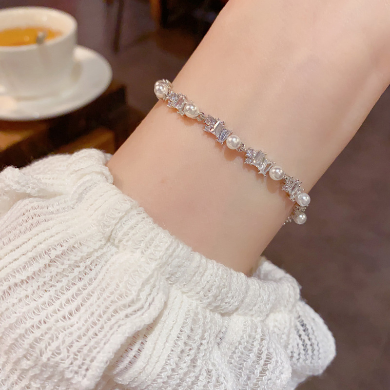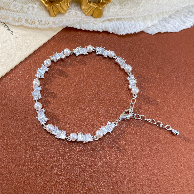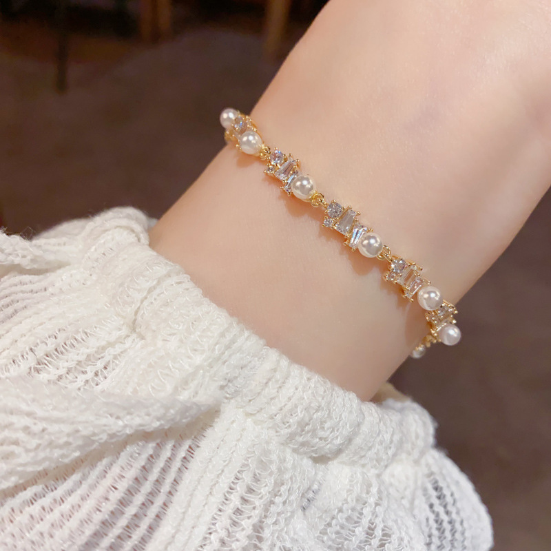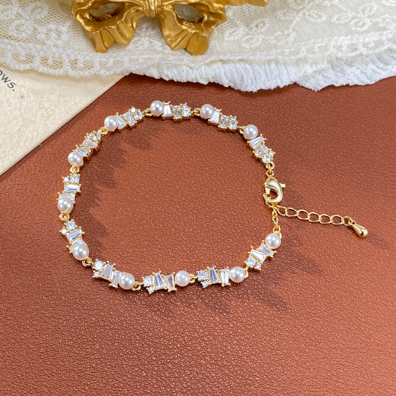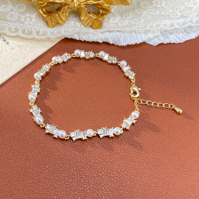 欧美跨境精致时尚轻奢不规则锆石珍珠手链女气质简约百搭超闪手饰