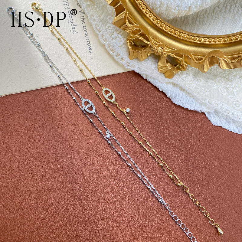 复古独特设计感镶钻猪鼻子双层手链气质时尚轻奢百搭超闪手饰批发