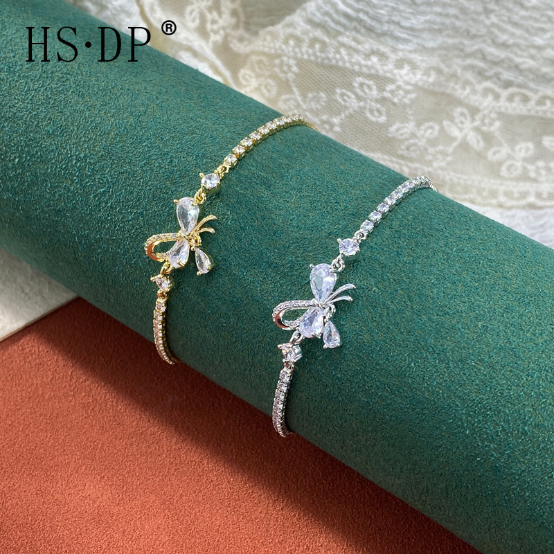 法式精致时尚微镶锆石蝴蝶结抽拉式手链女气质轻奢百搭高级感手环