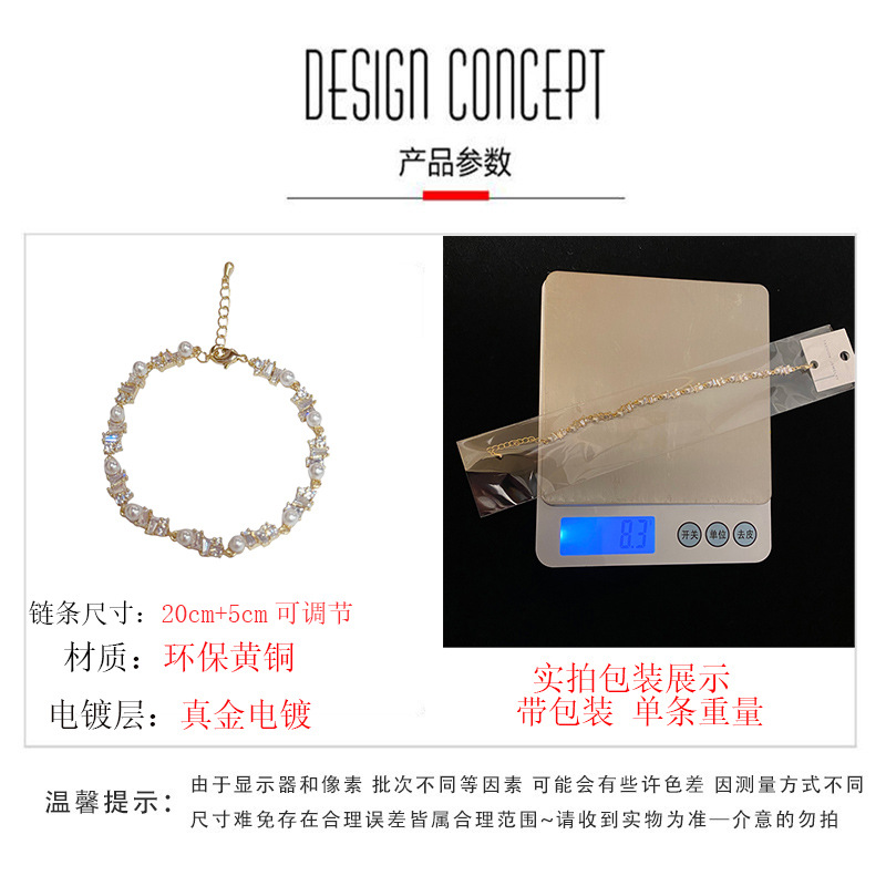 颜色 金色-不规则锆石珍珠手链(加厚真金电镀),银色-不规则锆石珍珠手链(加厚真金电镀)