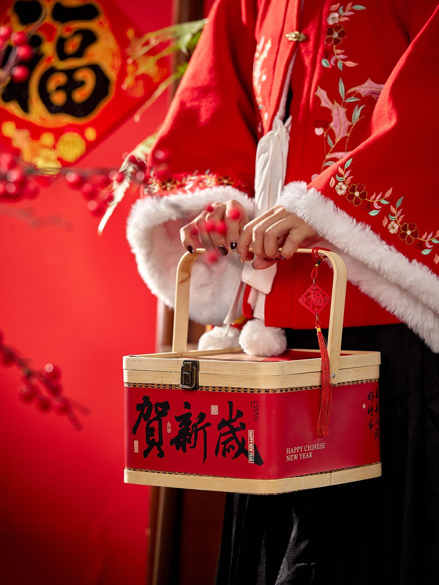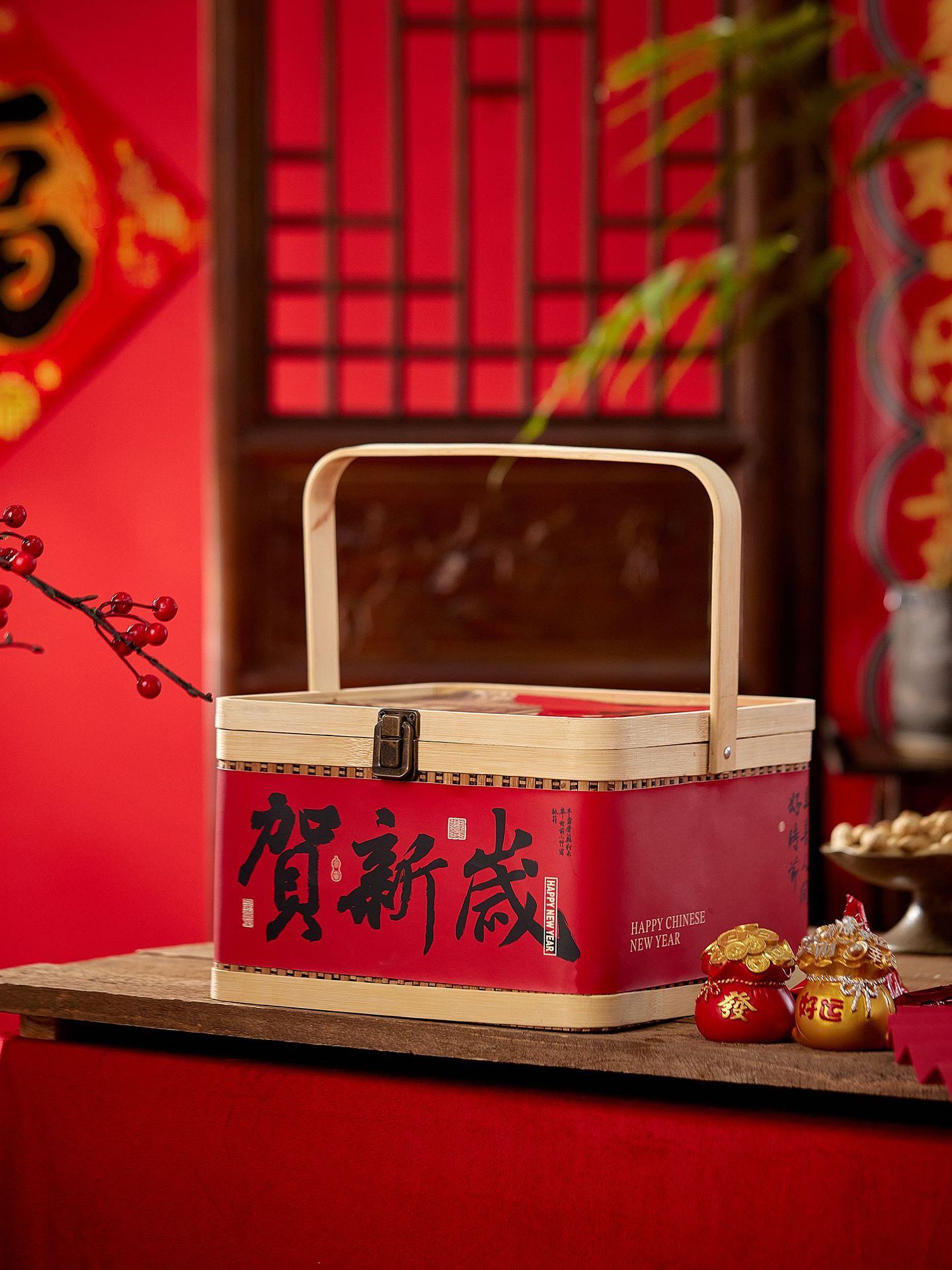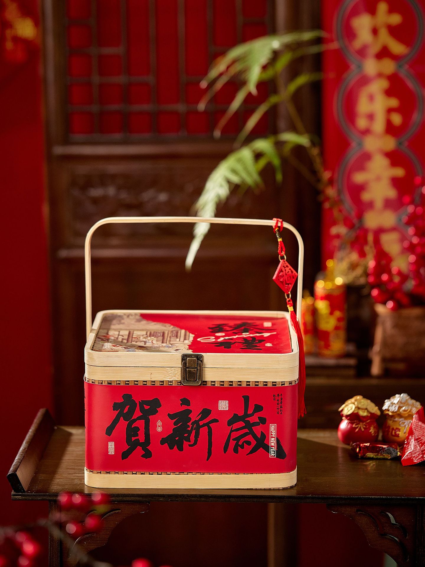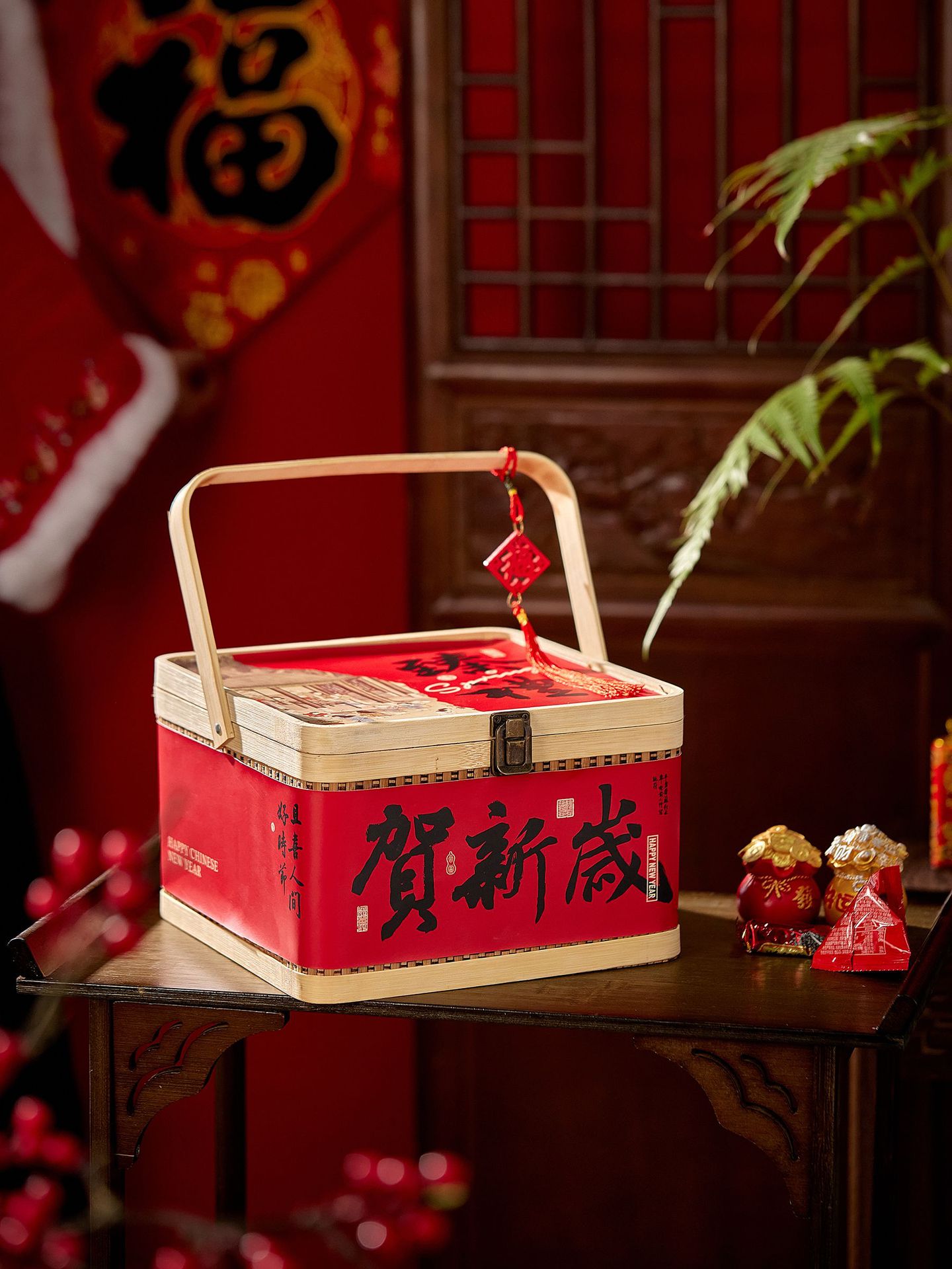 2026新年礼盒包装国风高档竹篮礼品盒马年春节过年雪花酥坚果糖盒