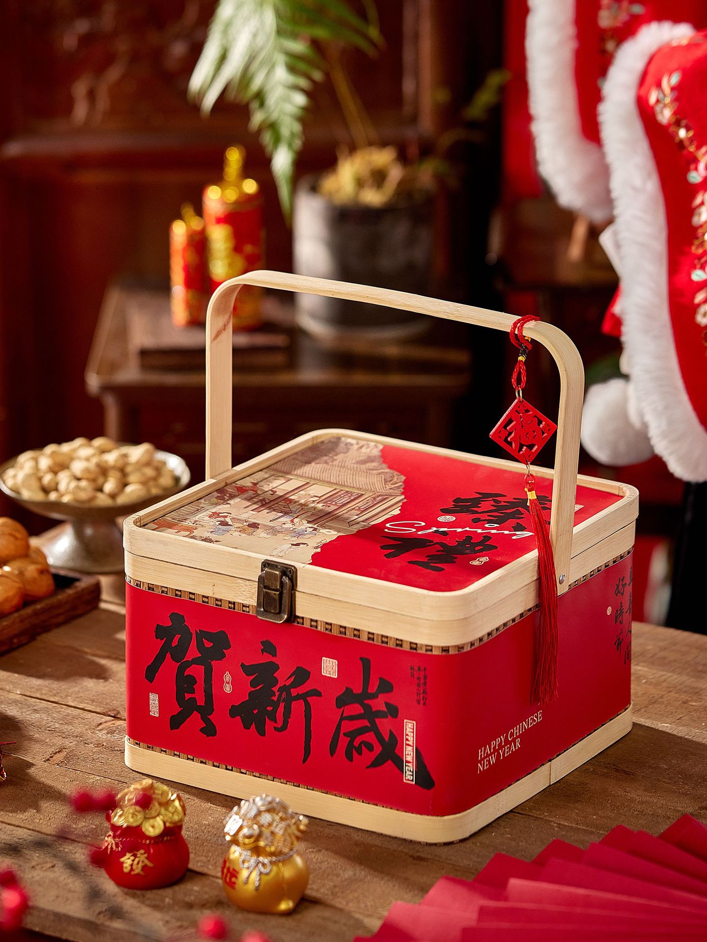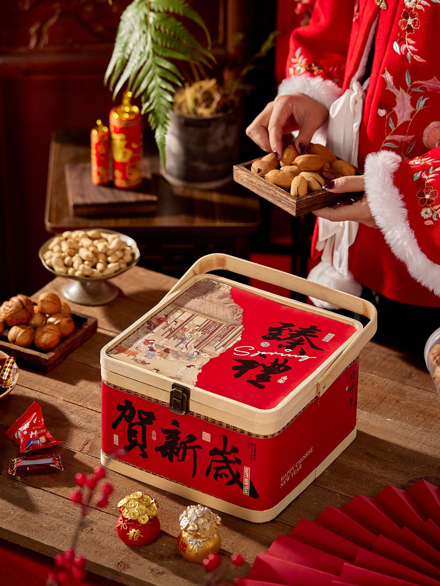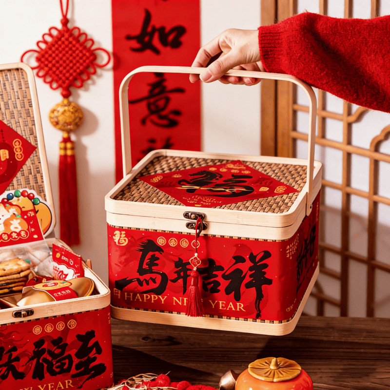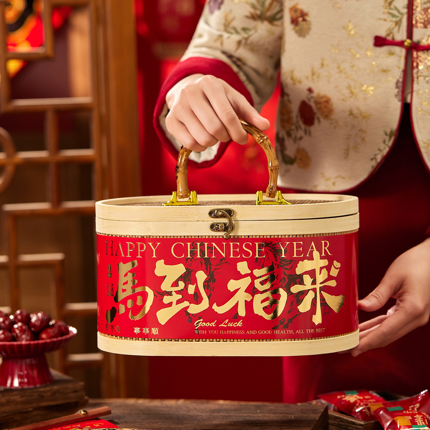 2026新年礼盒马年竹篮春节零食饼干糖果包装坚果过年货伴手礼空盒