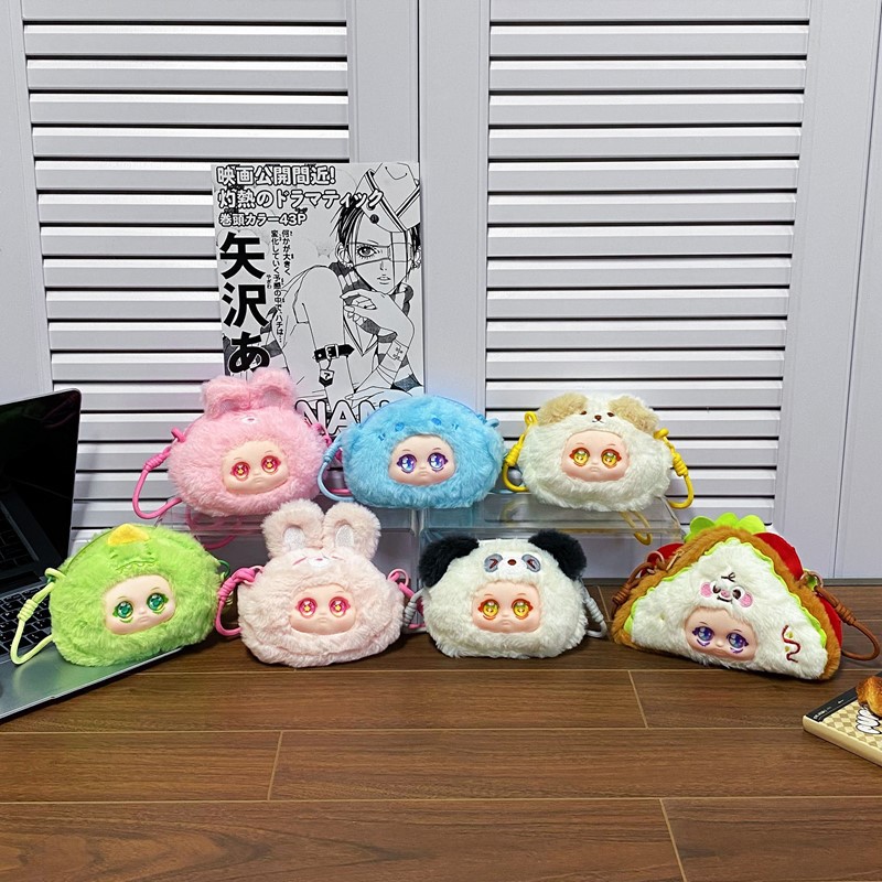 创意可爱动物搪胶脸娃娃毛绒斜挎包女生零钱包耳机口红收纳包礼品