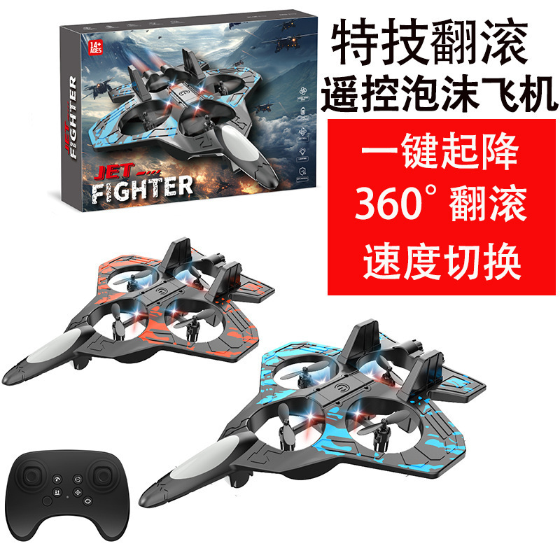跨境新款泡沫战斗机航模遥控飞机耐摔四轴无人特技表演玩具飞行器