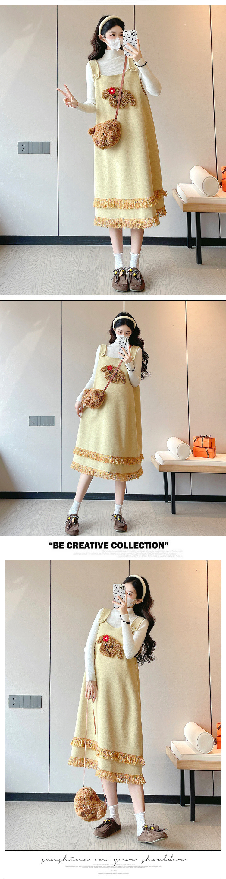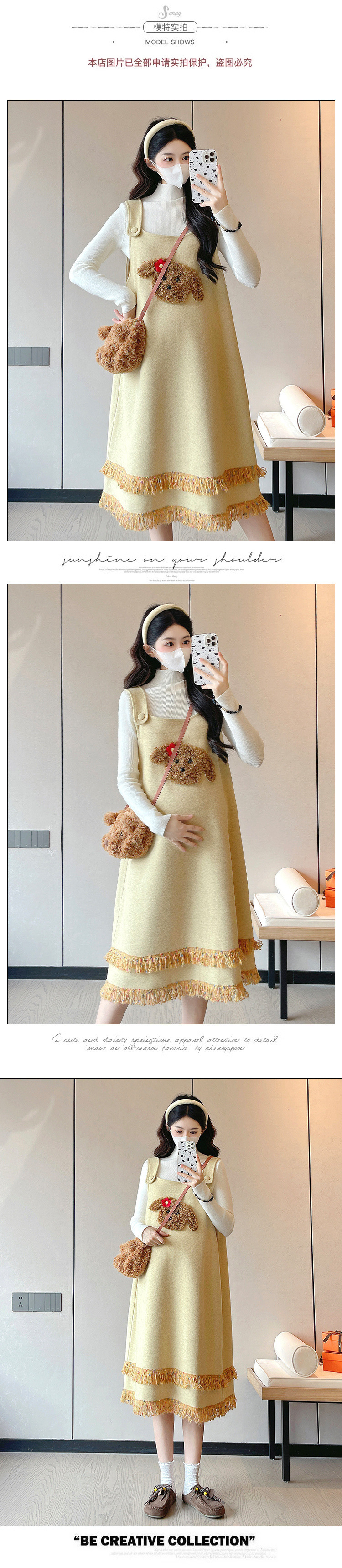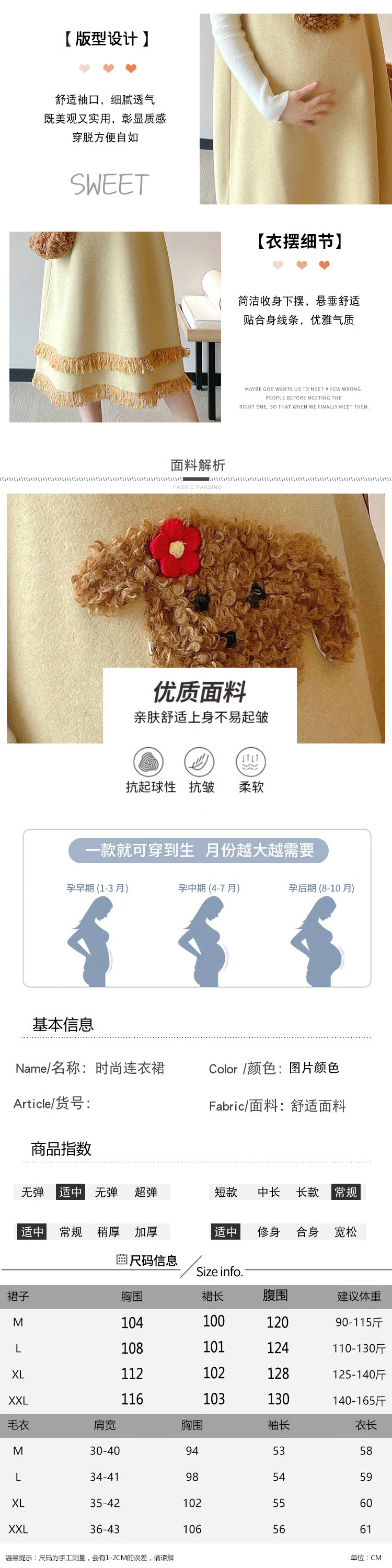 实拍 秋冬舒适针织衫+重工刺绣花边拼接甜美针织背心裙孕妈套装