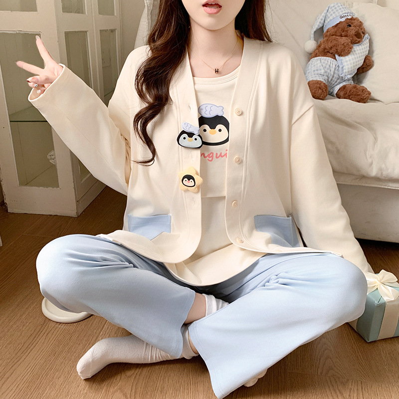带胸垫月子服三件套春夏季薄款产后产妇哺乳喂奶孕妇睡衣孕期专用