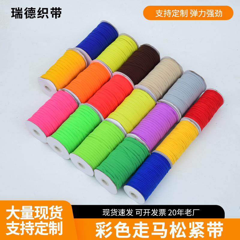 现货供应3-10mm扁彩色跑马带加厚高弹服装袖口家纺辅料走马松紧带