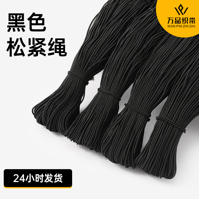スポット卸売 1.0-10.0 ミリメートルタグストラップ素材耐久性のあるマルチストランドラテックスシルク黒ラウンド弾性バンド