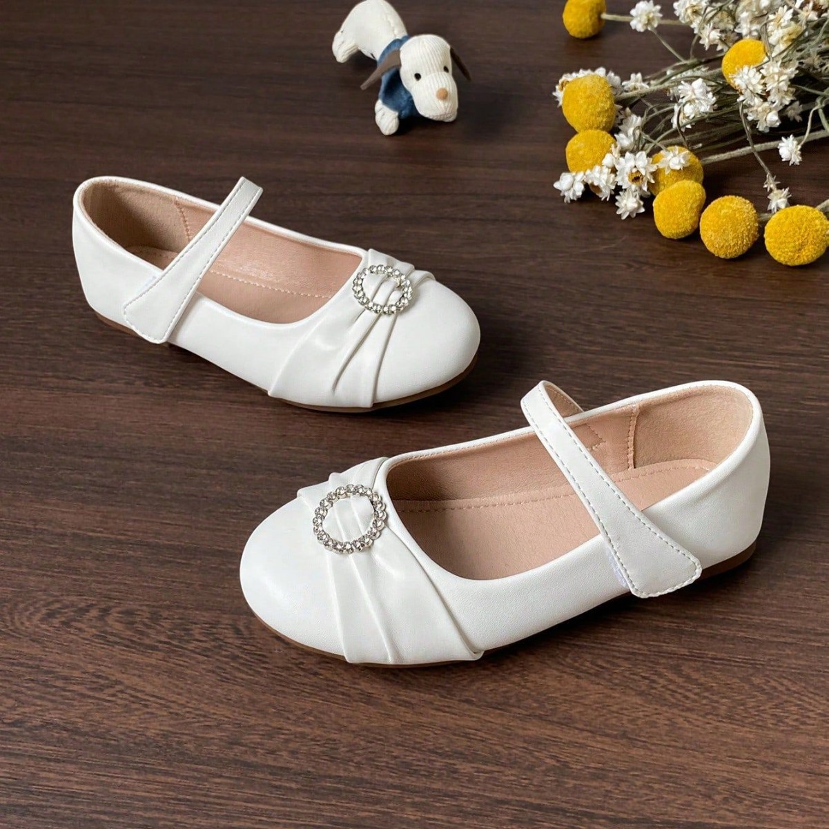跨境外贸Girls'single shoes甜美风圆头水钻平底百搭公主鞋小皮鞋