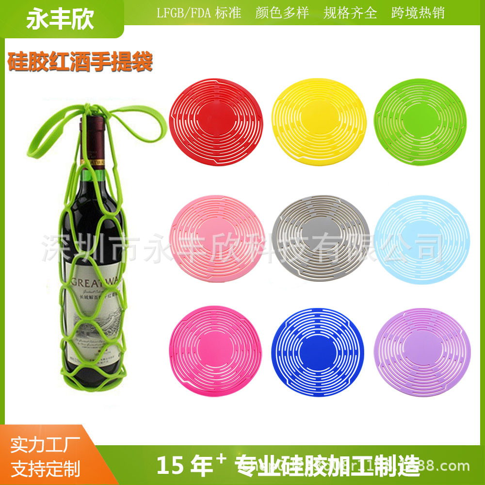 食品级硅胶红酒手提袋 创意硅胶网袋提篮隔热垫防烫耐高温餐垫子