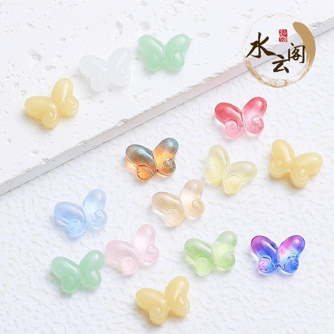 琉璃仿玉渐变蝴蝶吊坠散珠手工diy手链项链发簪琉璃饰品配件批发