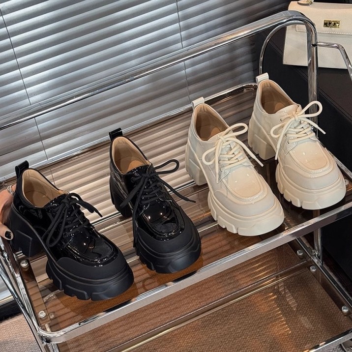 香港时尚厚底增高小皮鞋女2026春秋百搭系带乐福鞋休闲淑女松糕底