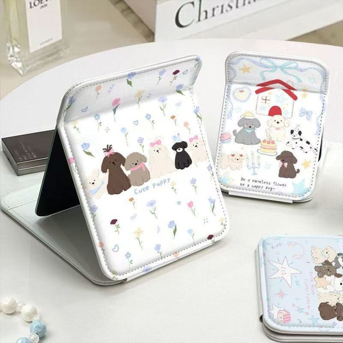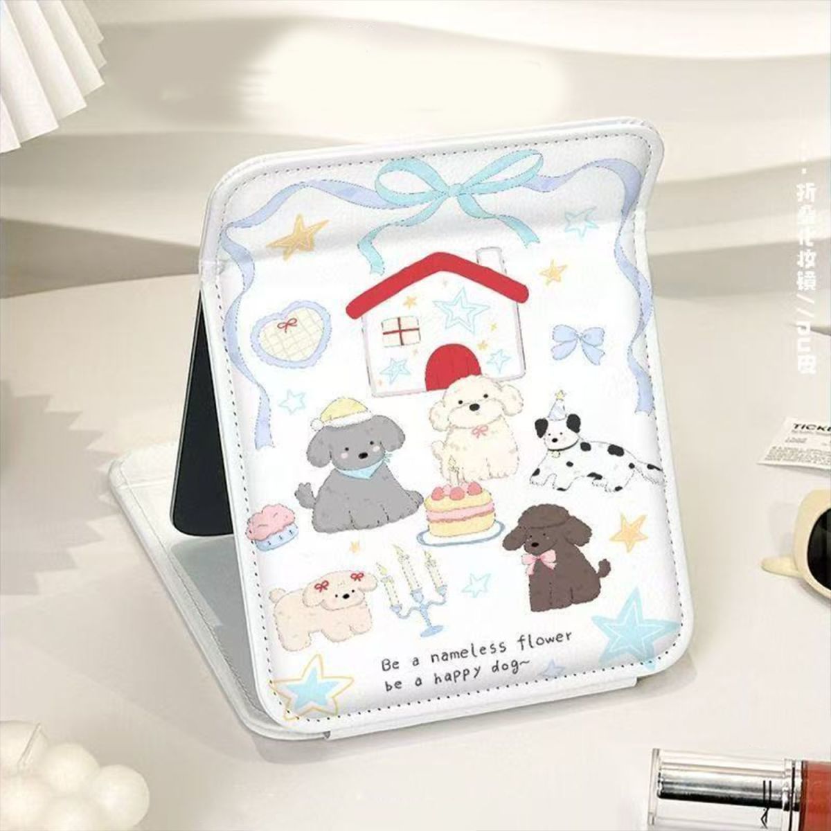新款镜子可爱小狗加厚防摔旅行外出随身便携化妆镜高清家用梳妆镜