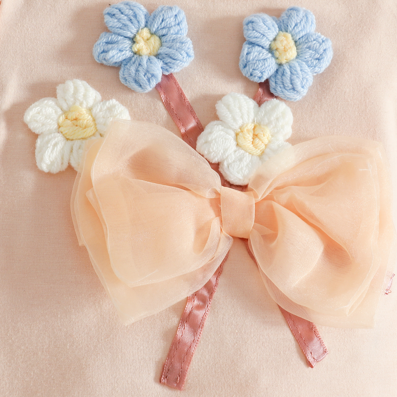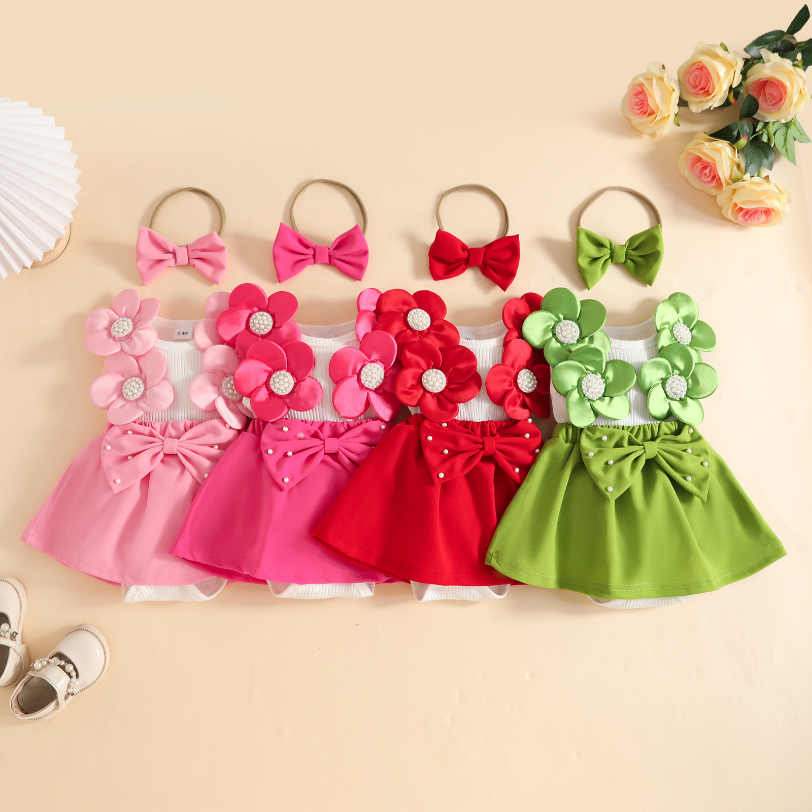 甜美清新0-1岁女宝宝大花朵无袖连衣裙+发带女婴哈衣裙钉珠蝴蝶结