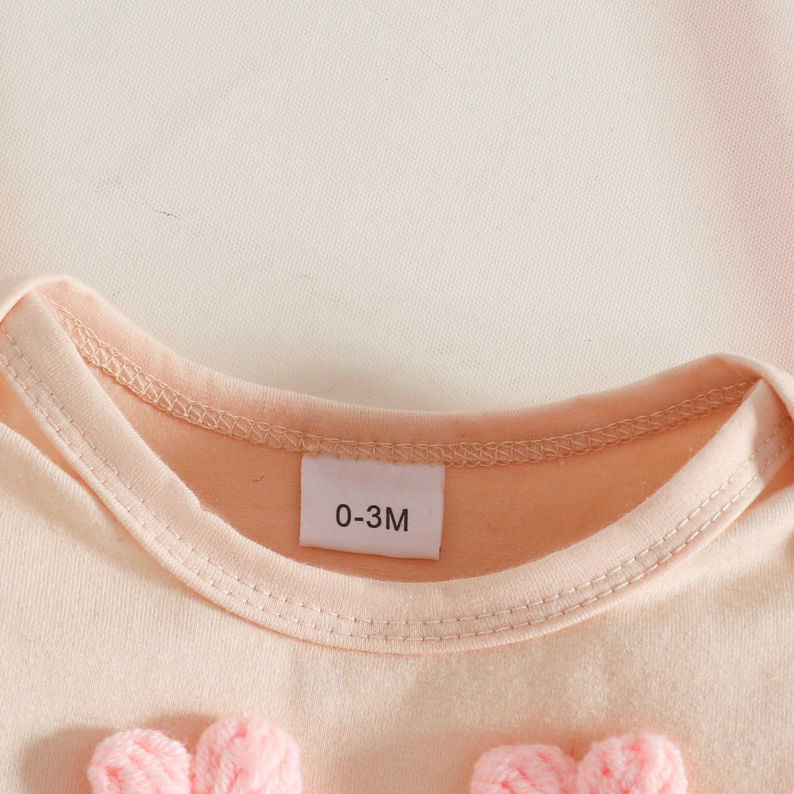 外国貿易の夏の甘い学歩の女性の子供の3dの大きい愛の半袖の上着は花の装飾のボタンの半ズボンの2つのセットを貼ります。