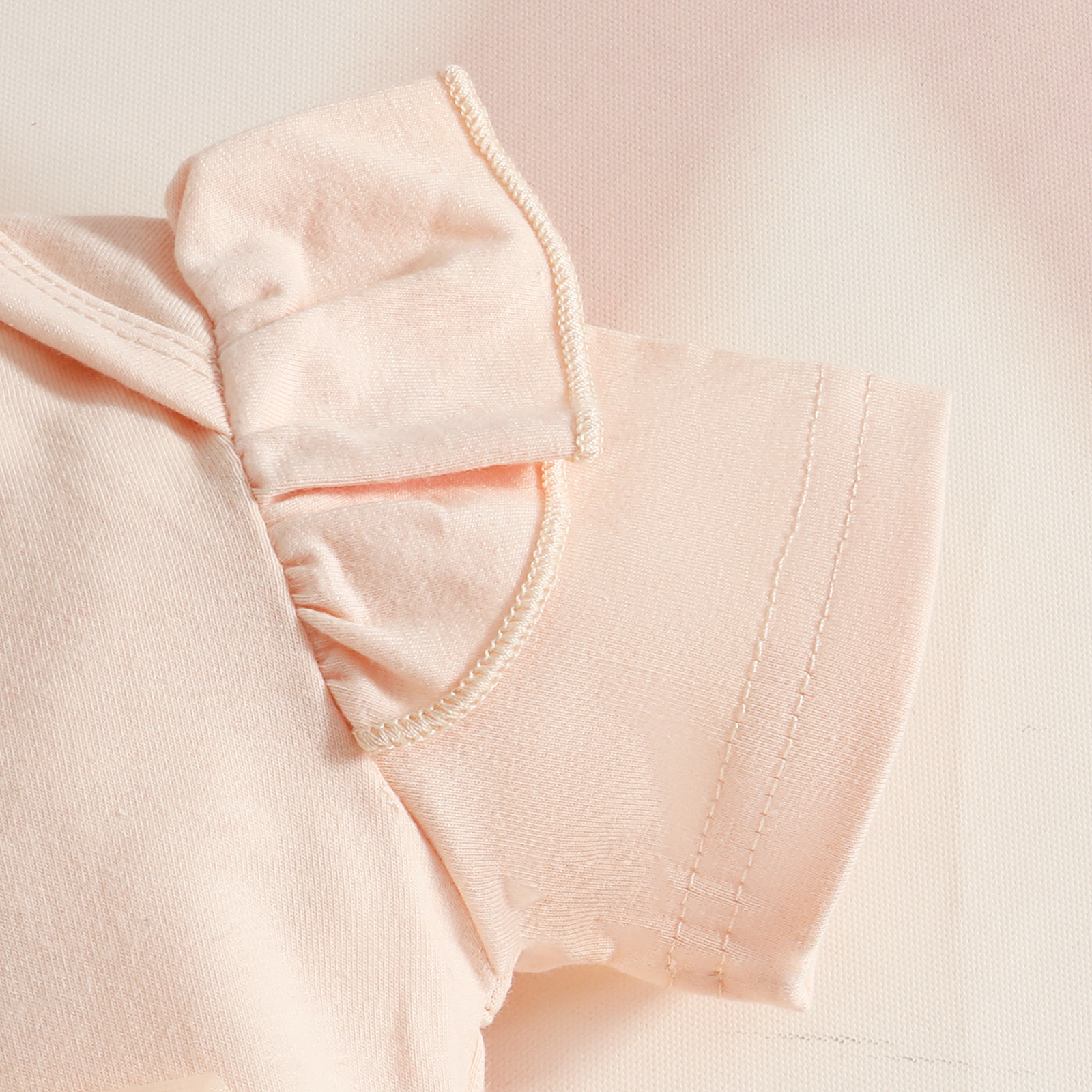 跨境婴幼儿童纯色短袖袖小飞袖三角哈衣印花蝴蝶结背带裙夏季套装