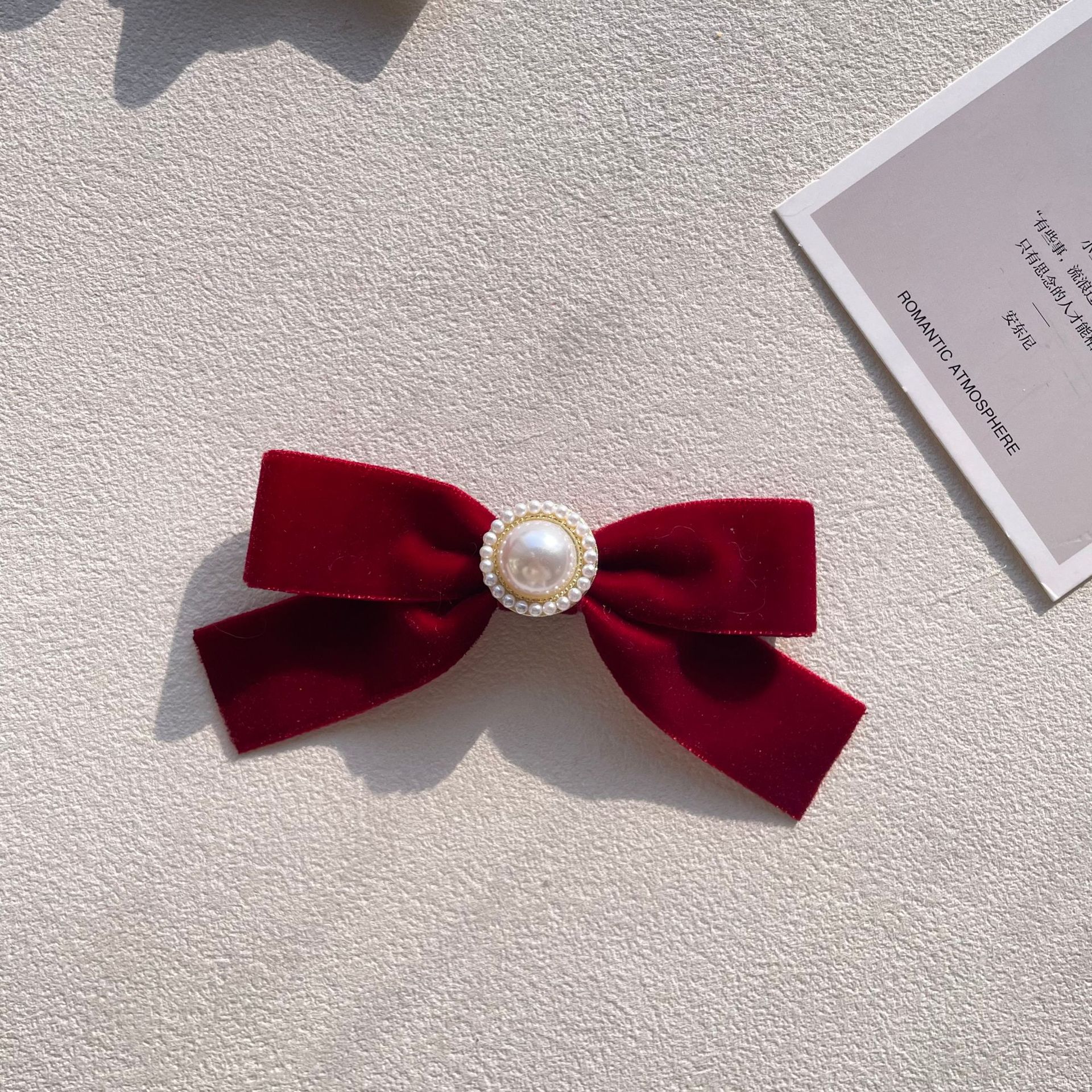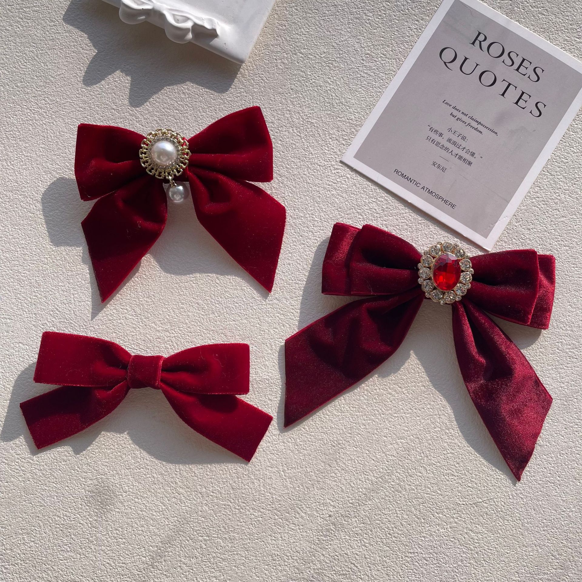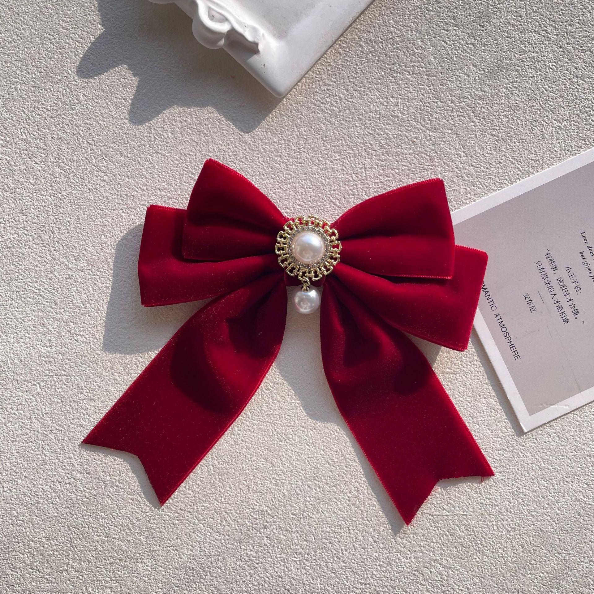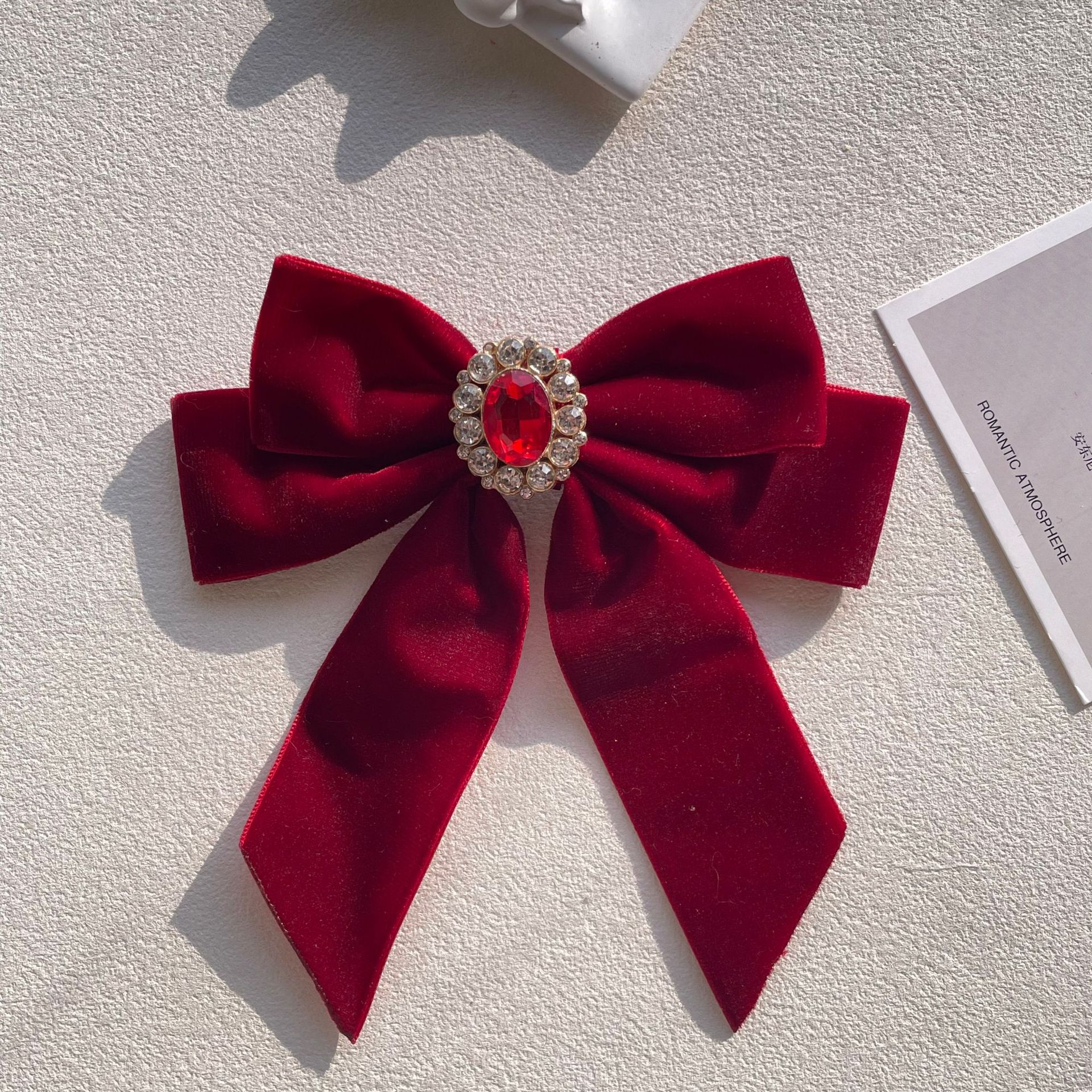 货号 MM-00550天鹅绒酒红色蝴蝶结胸针配饰