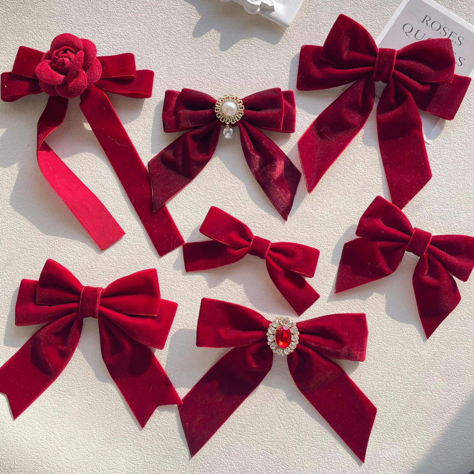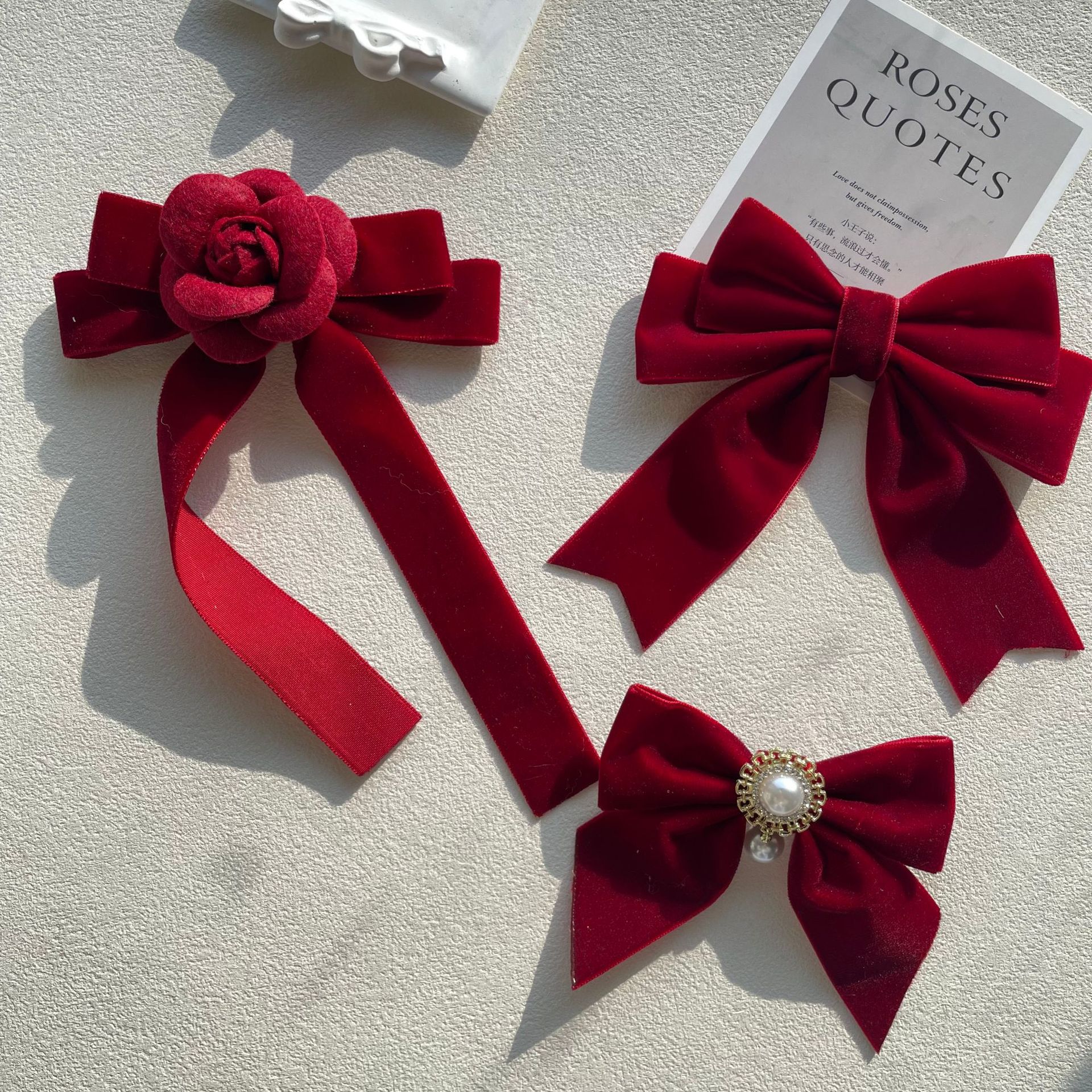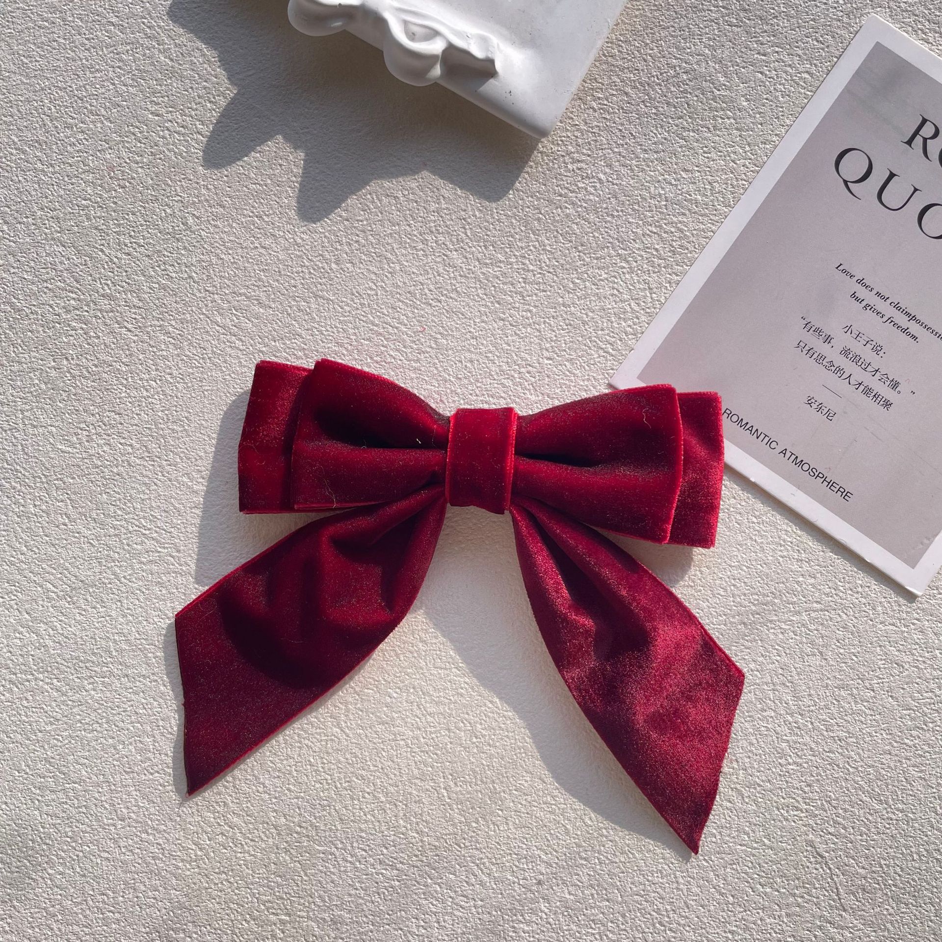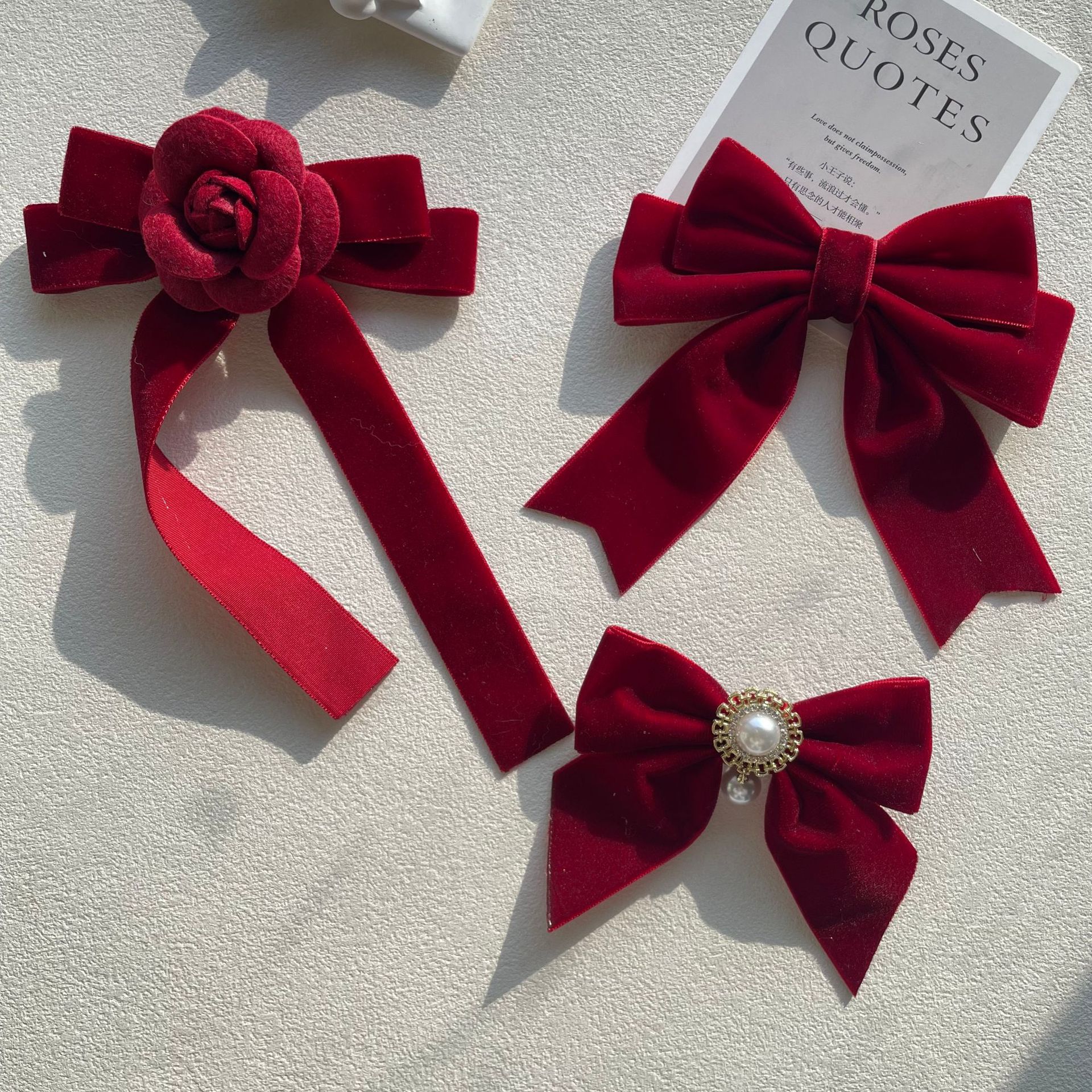 货号 MM-00550天鹅绒酒红色蝴蝶结胸针配饰