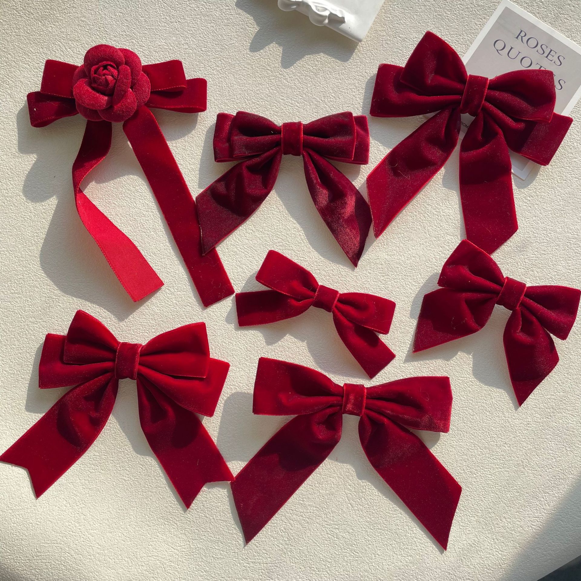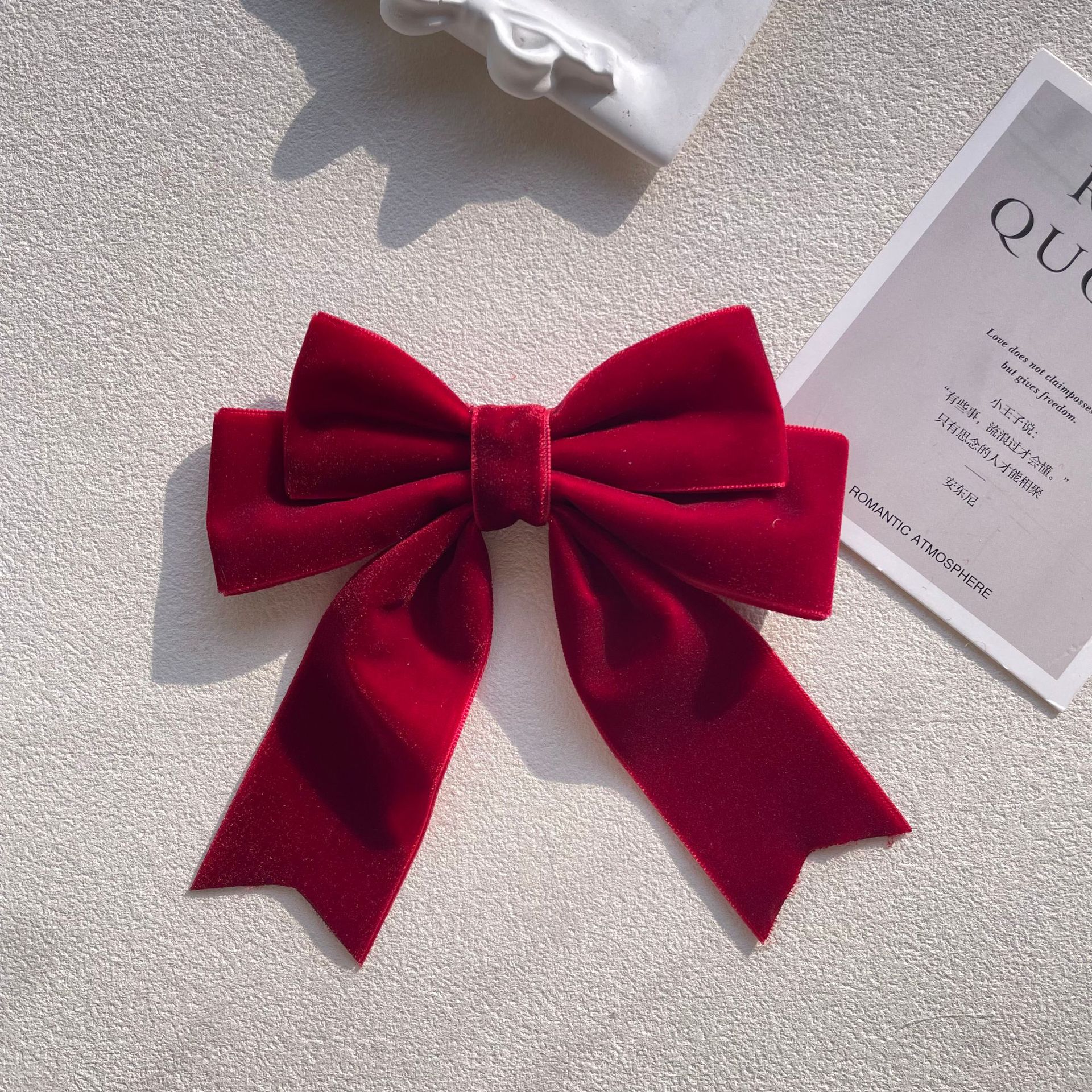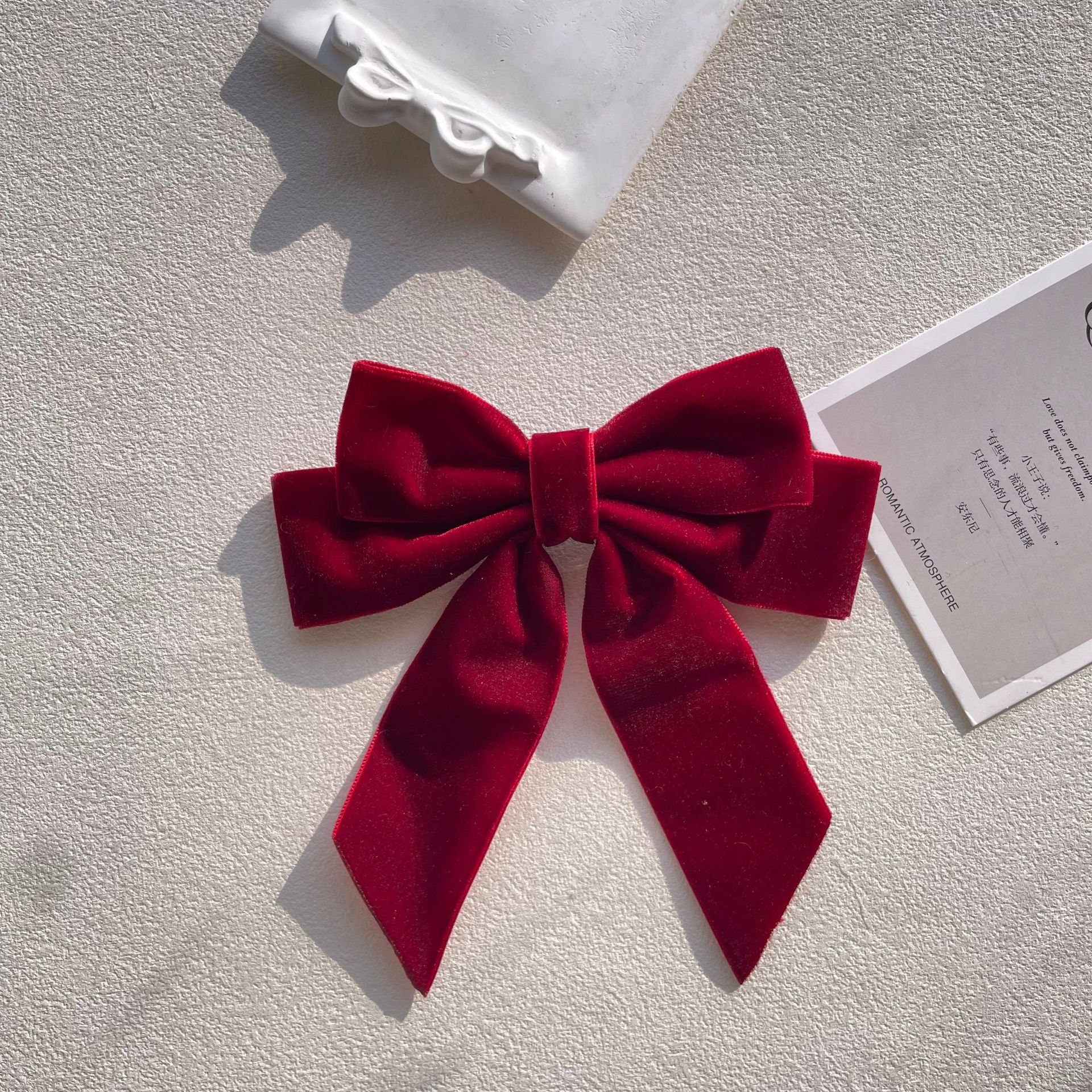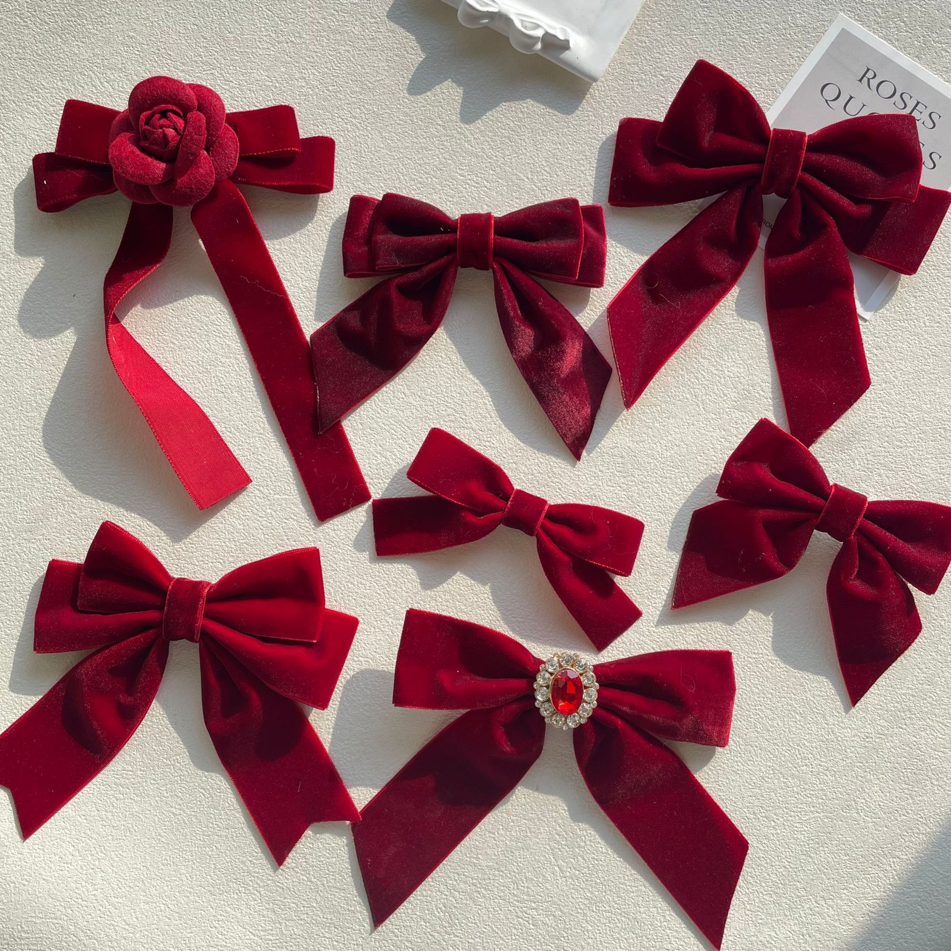货号 MM-00550天鹅绒酒红色蝴蝶结胸针配饰