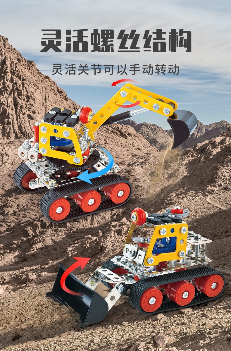 科教益智合金拼装工程车立体手工diy科学小制作模型摆件玩具礼盒