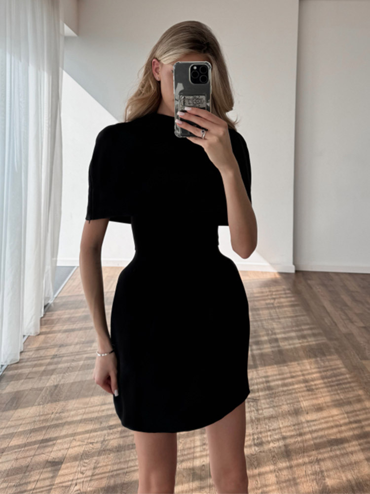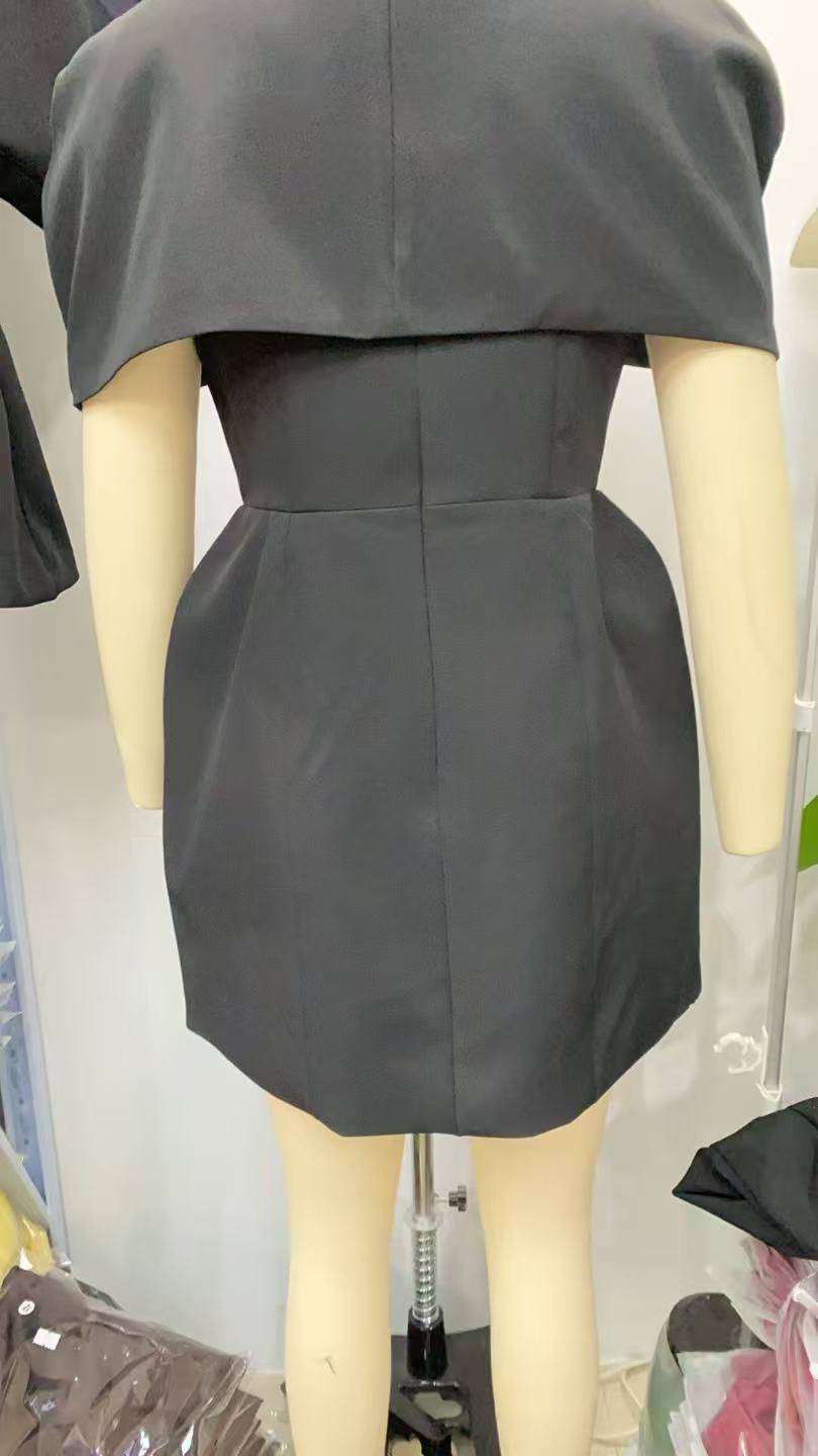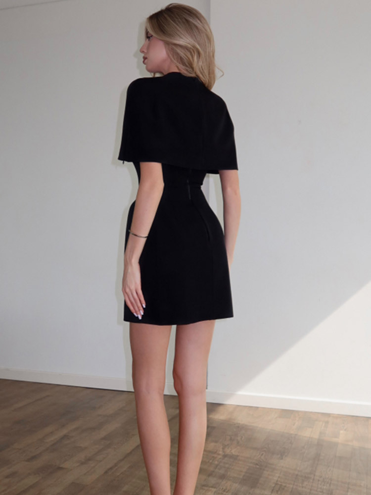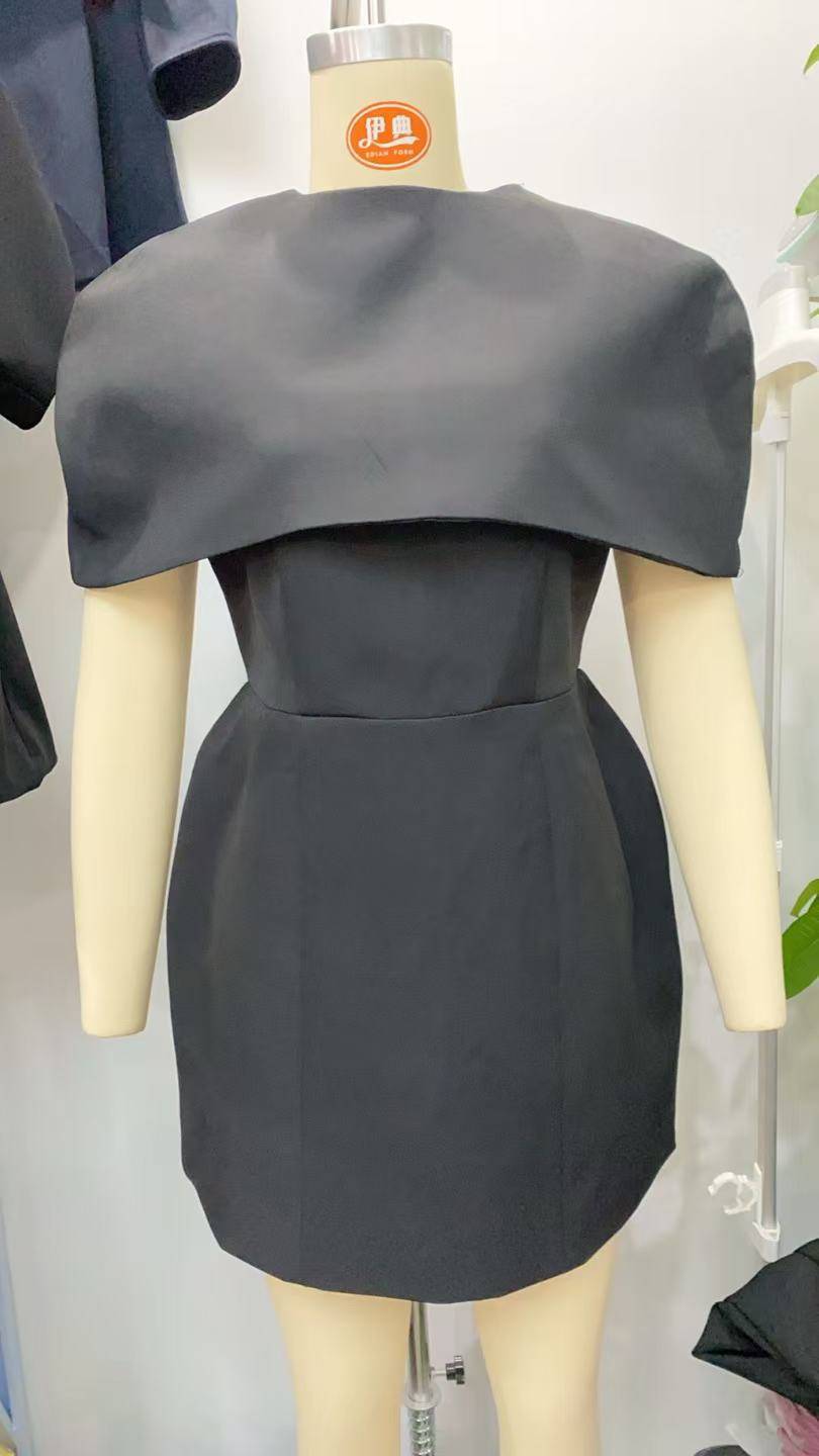 实拍-气质优雅聚会纯色包臀披肩礼服连衣短裙2025秋季跨境欧美风