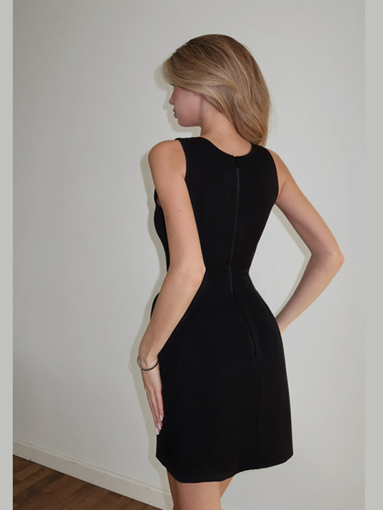 实拍-时尚气质优雅V领长袖花苞收腰短裙2025秋季新款跨境欧美风