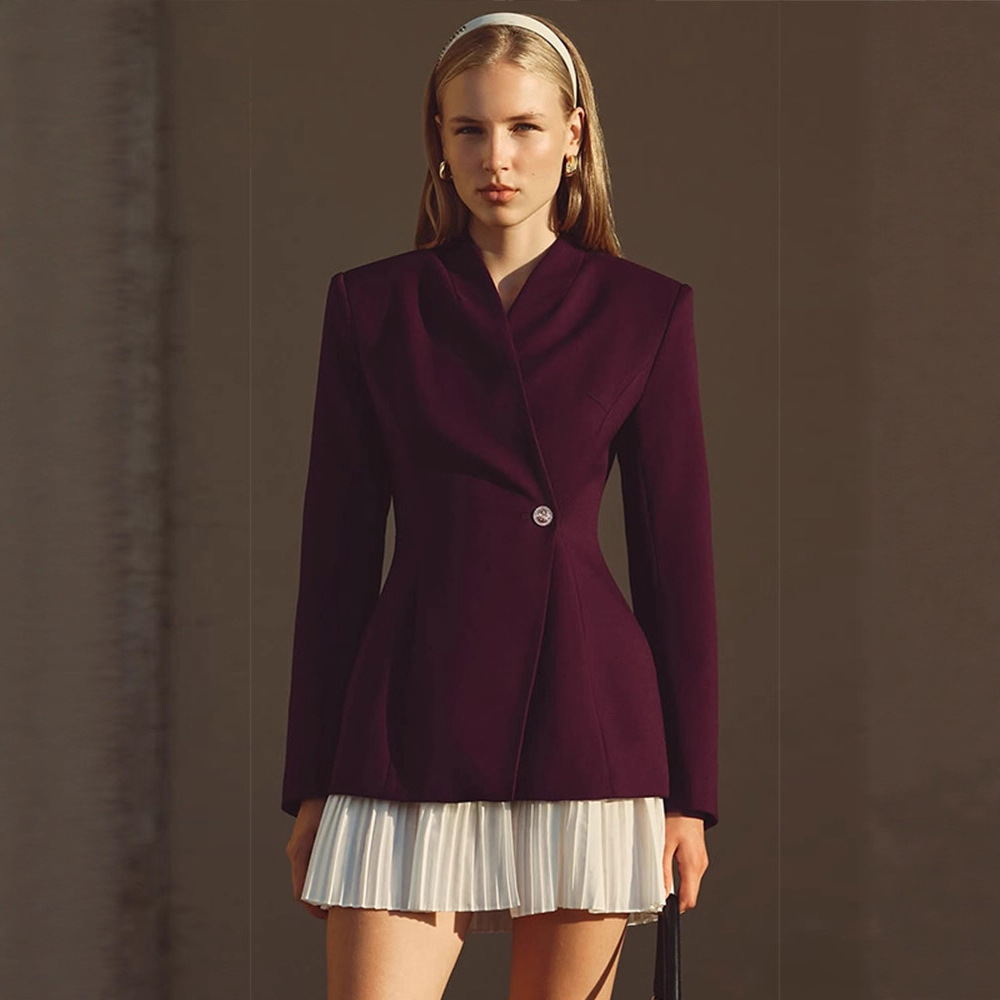 リアルショット-エレガントなソリッドカラースリムフィットパッチワークウエストソリッドカラージャケット2025クロスボーダーヨーロッパとアメリカンスタイルの新しいスタイル